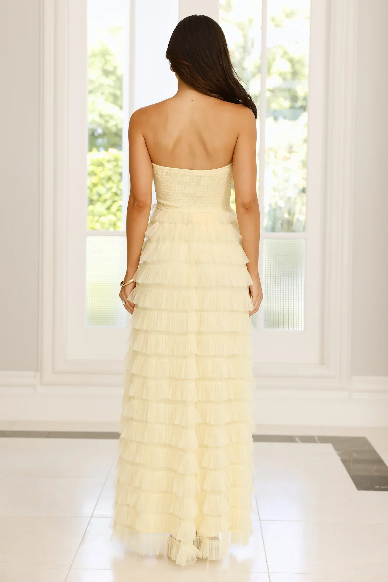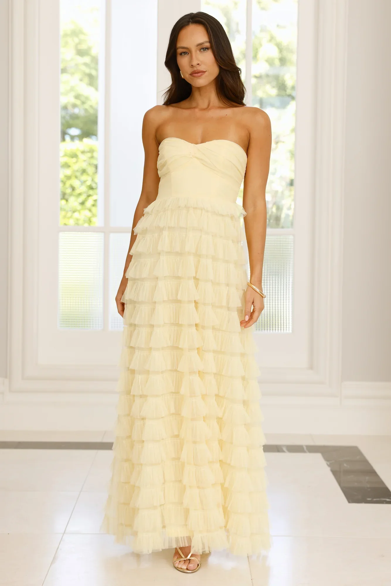 Lovers In Paris Strapless Tulle Maxi Dress Yellow