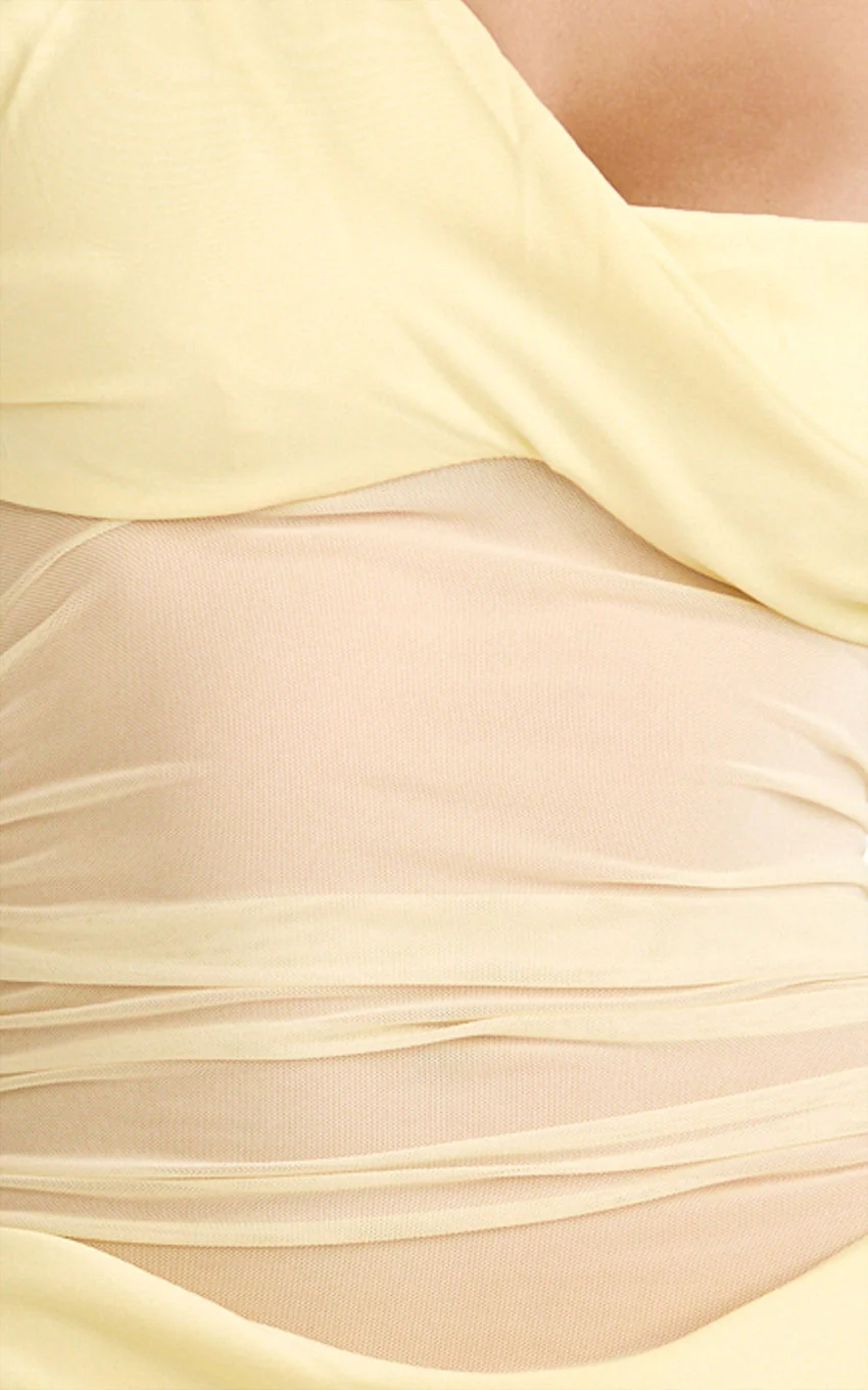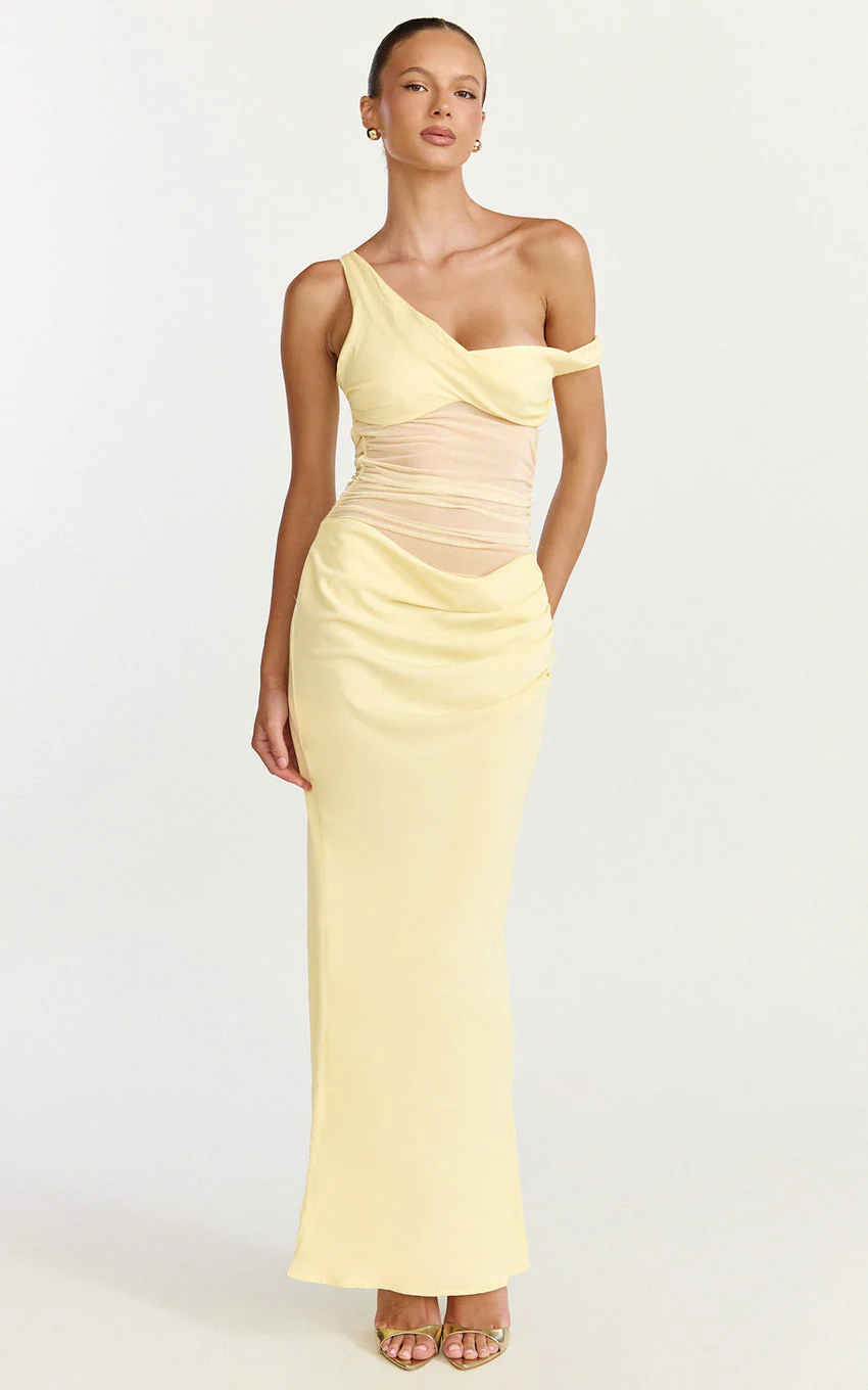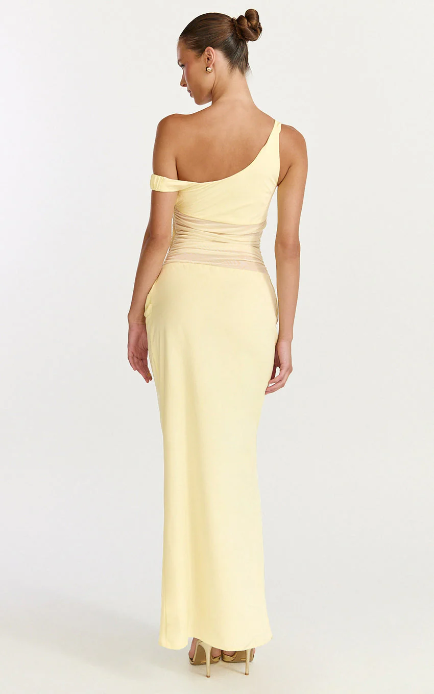 Elias Maxi Dress - Twisted One Shoulder Cowl Dropped Waist Dress in Lemon