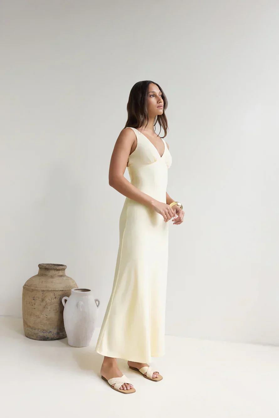 Lost In Daydreams Satin Maxi Dress Yellow
