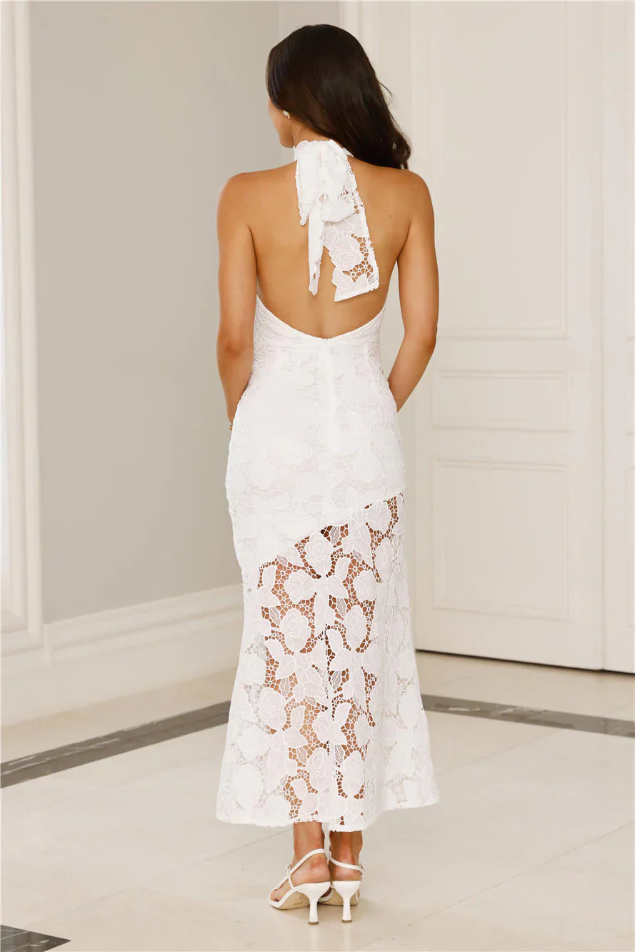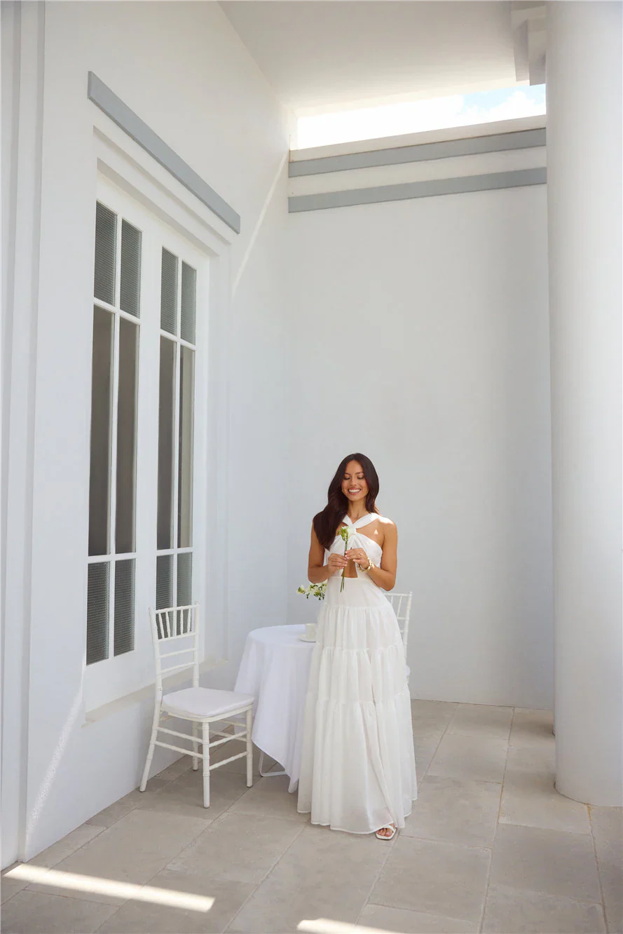 Maldives Garden Halter Maxi Dress White