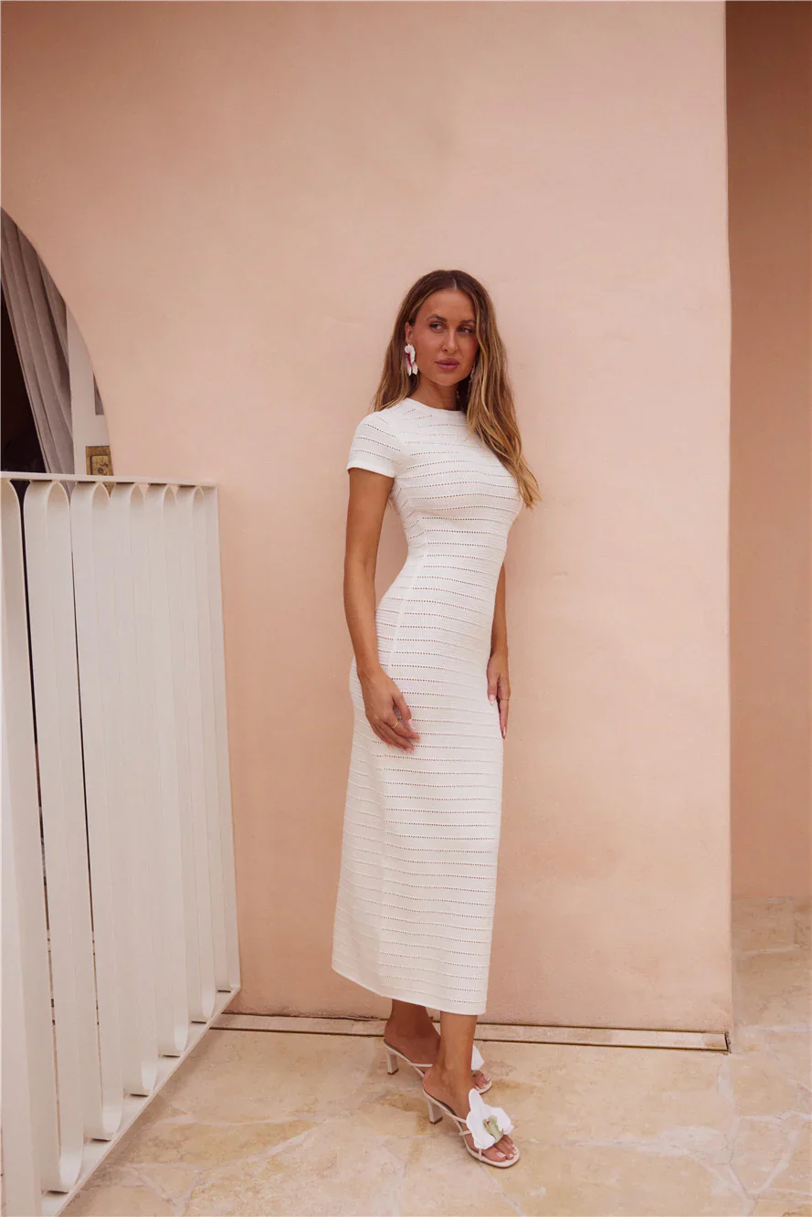 Adventures In Paradise Short Sleeve Knit Maxi Dress White