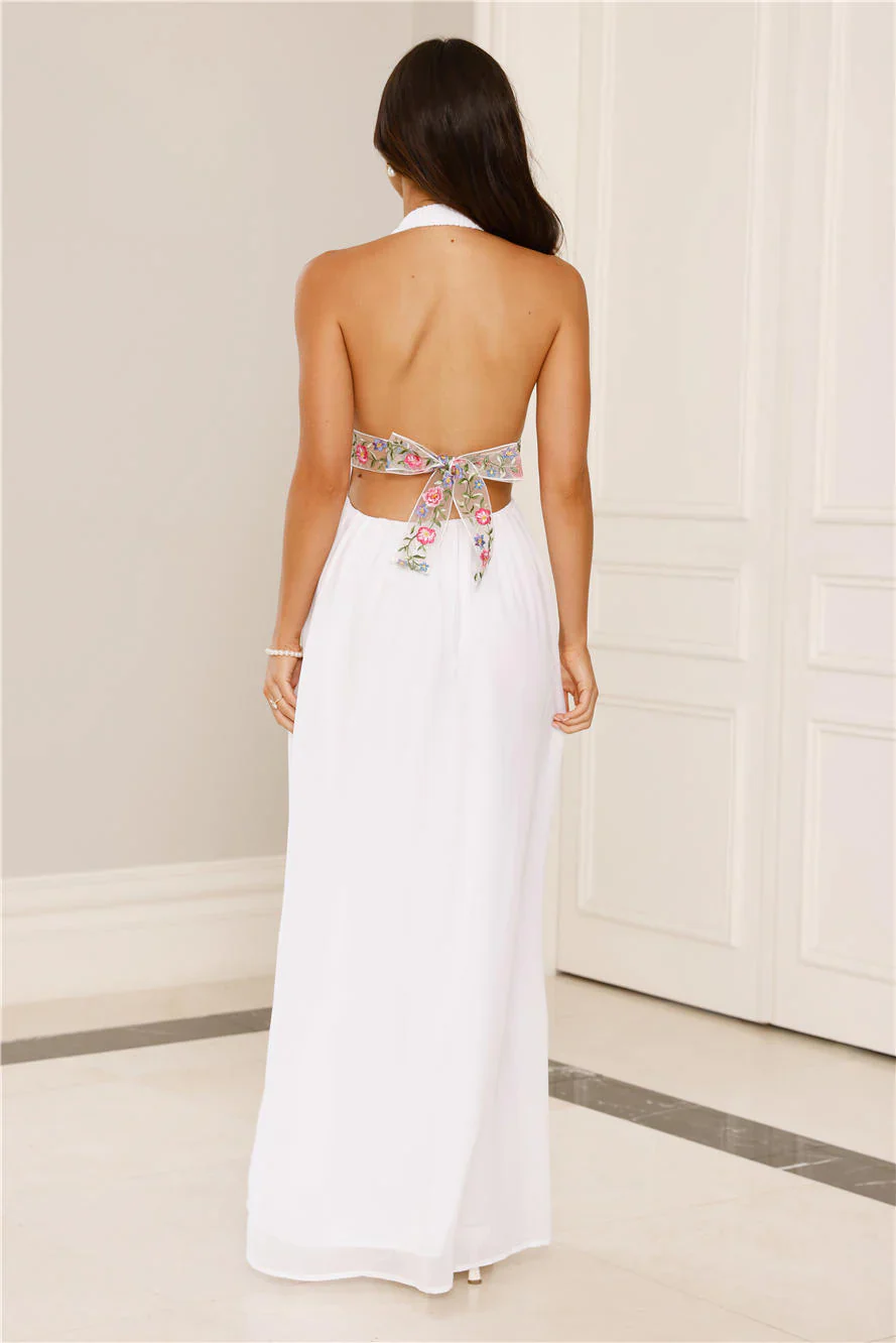 Soft Opulence Embroidered Halter Maxi Dress White