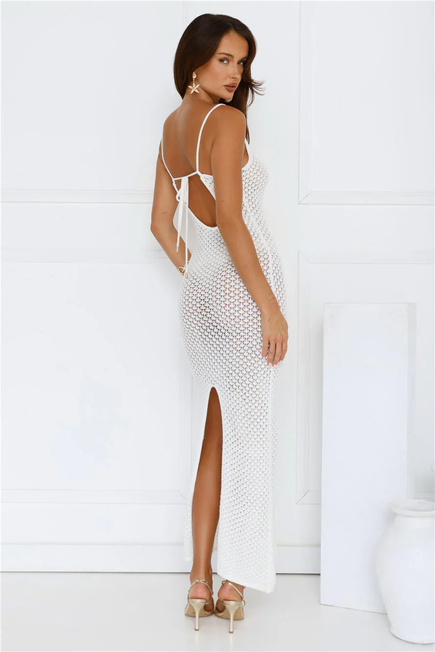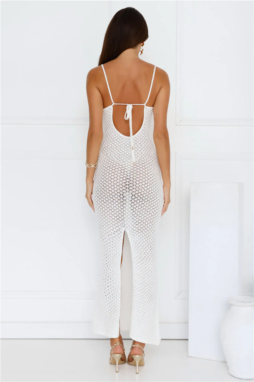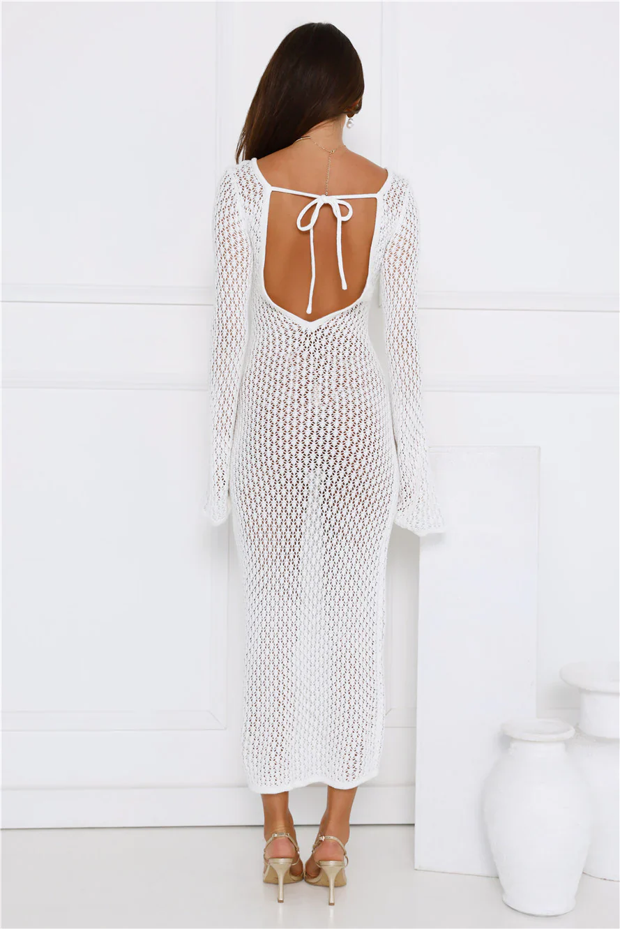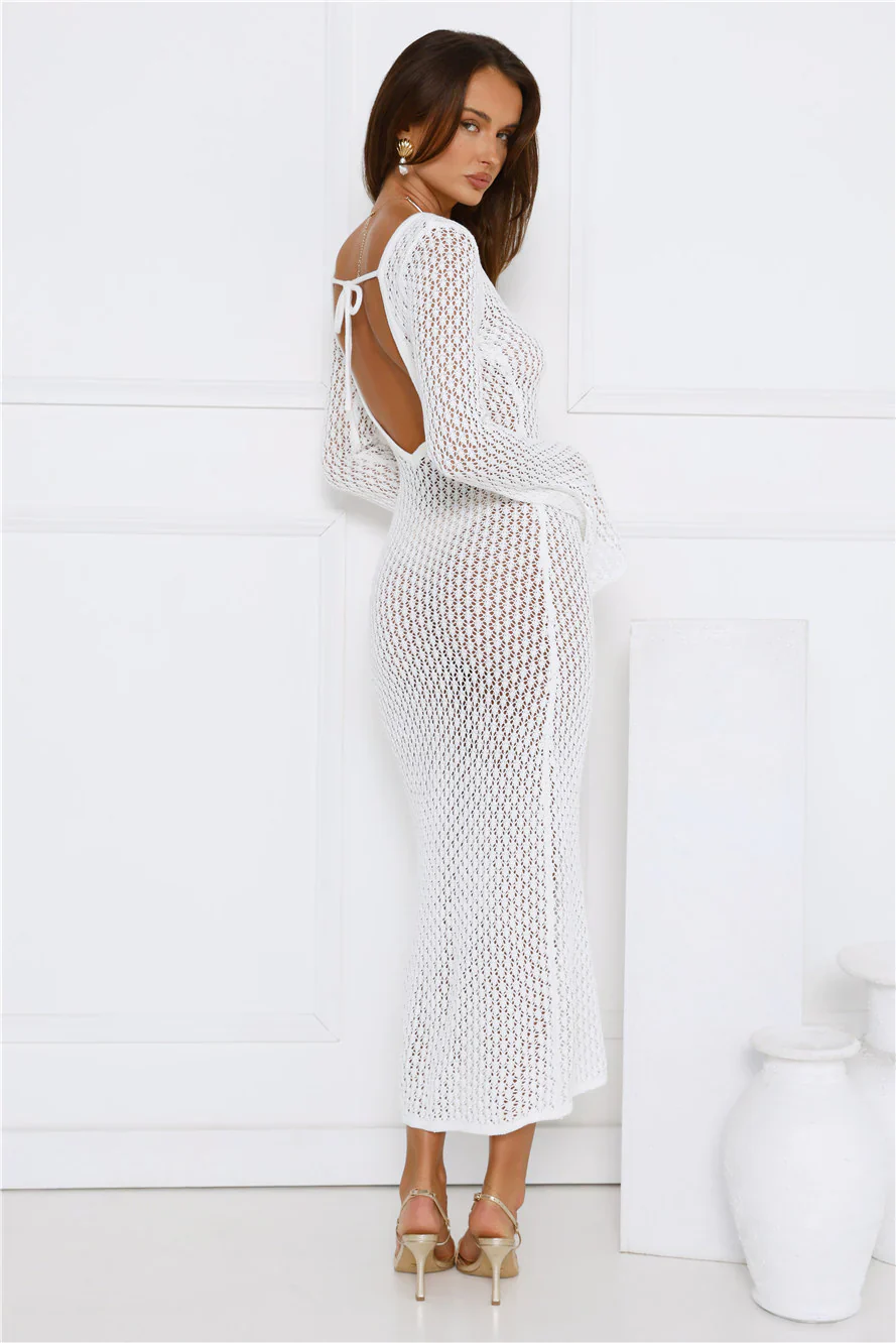 Sailing Into Sunset Knit Long Sleeve Maxi Dress White