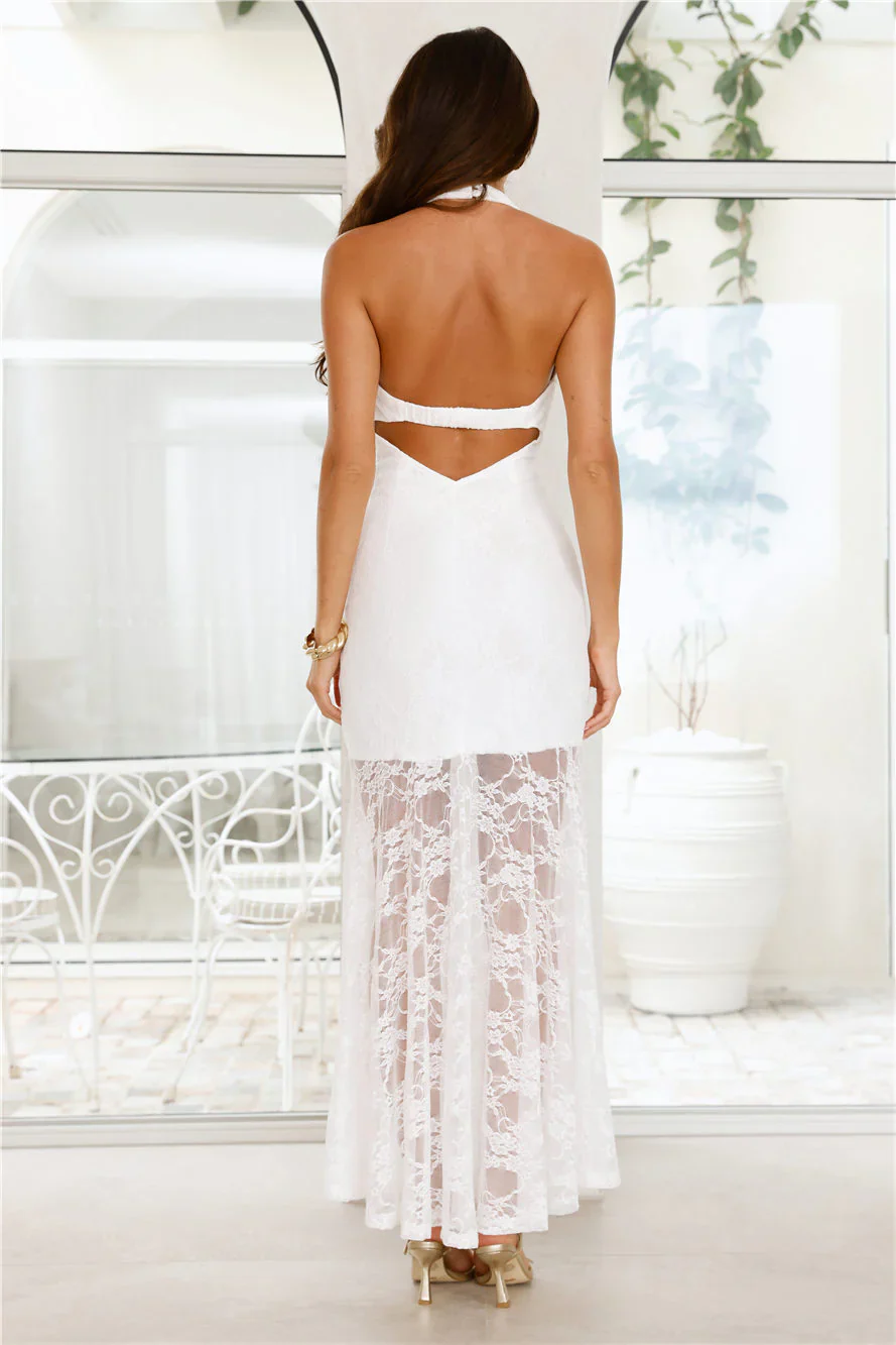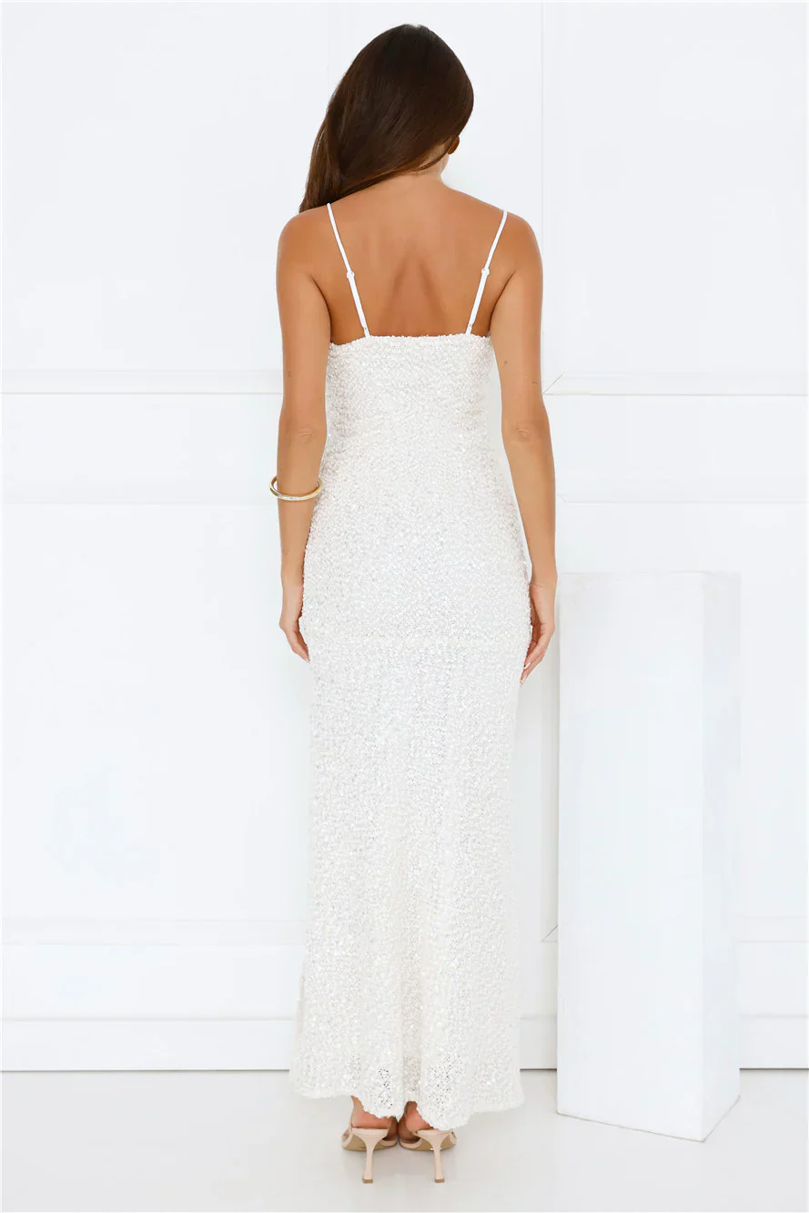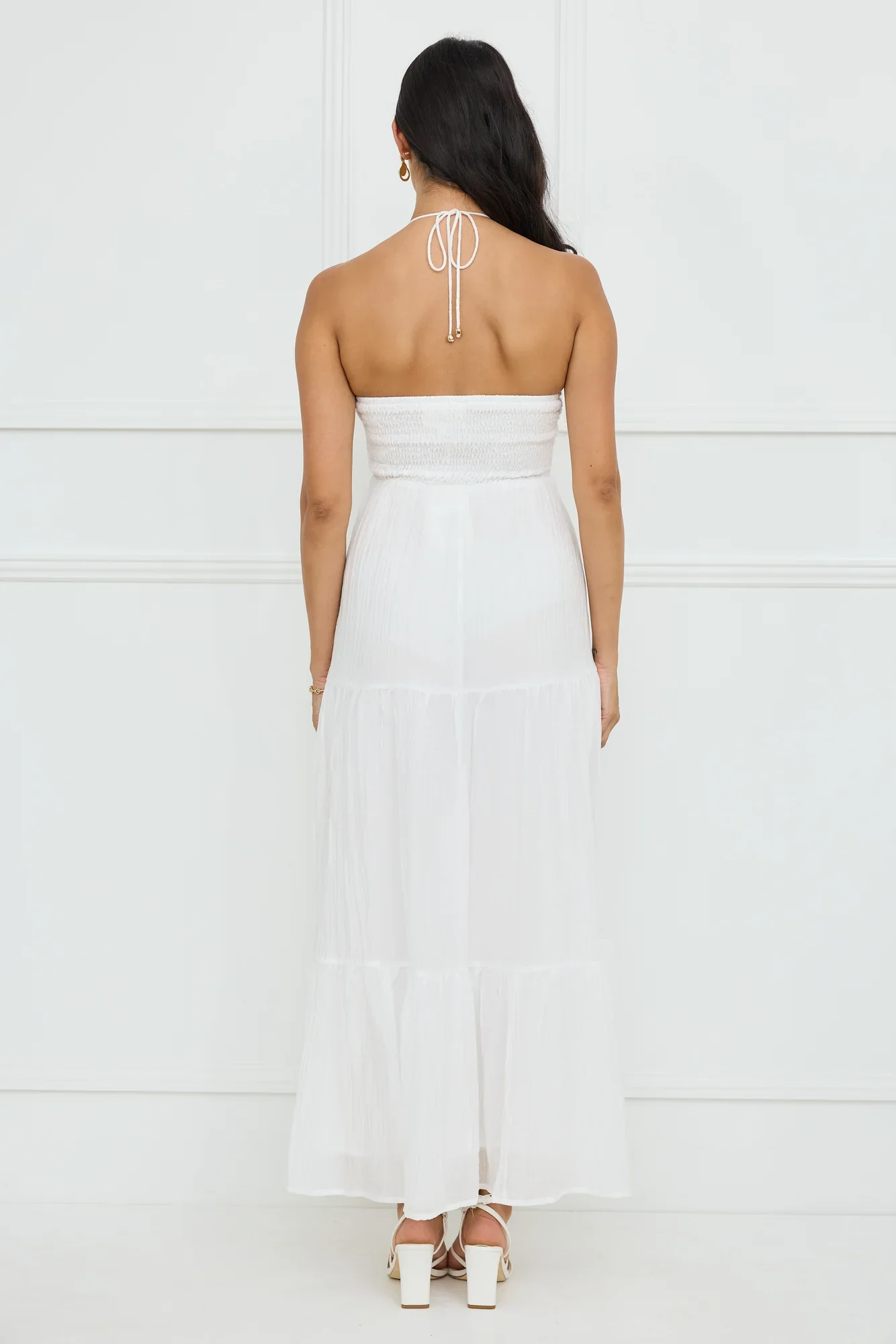 Sailing Into Sunset Knit Long Sleeve Maxi Dress White