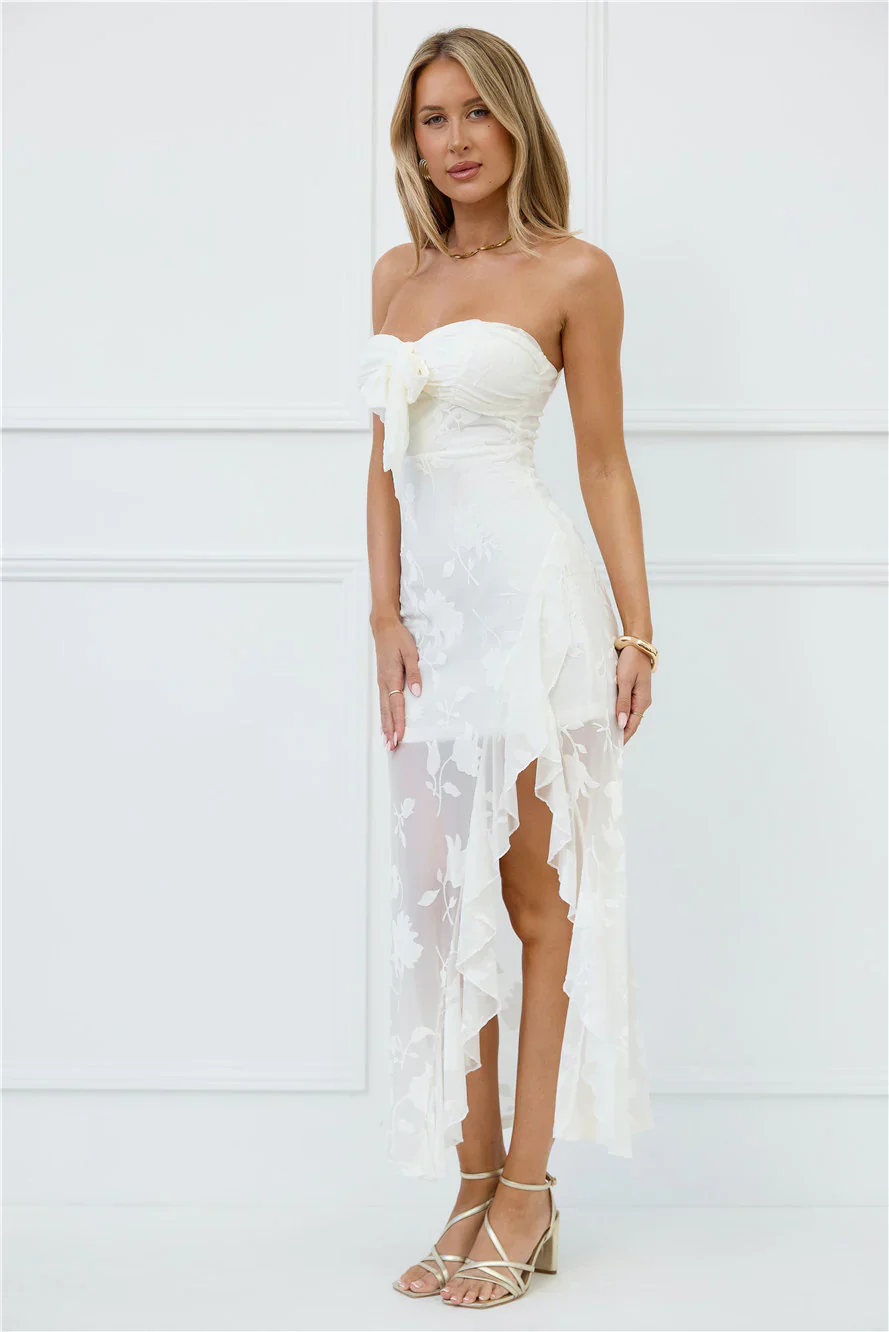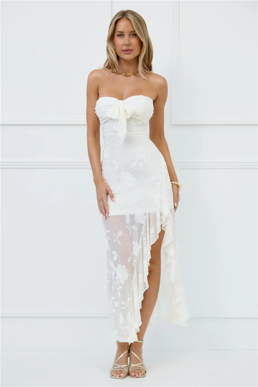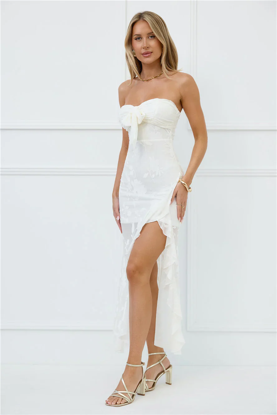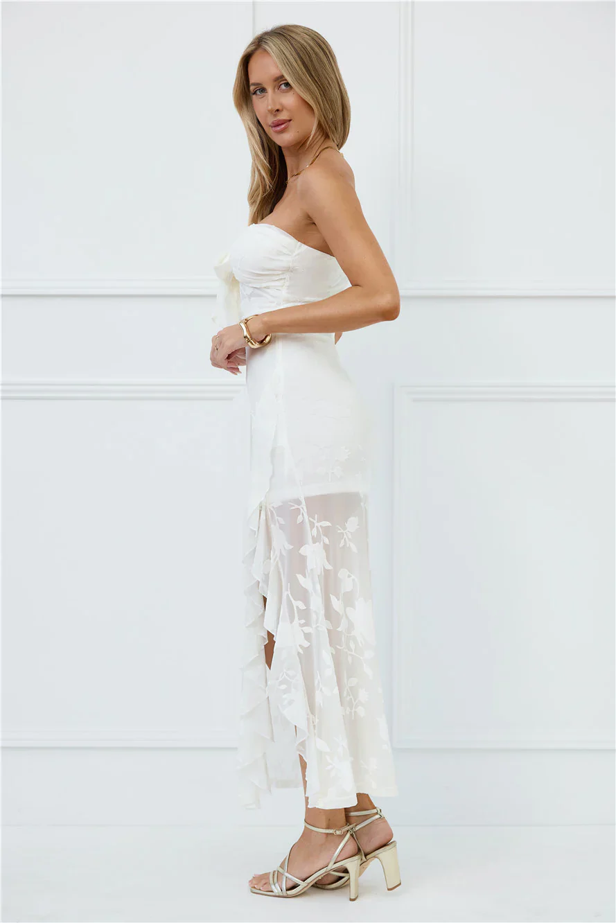 Sailing Into Sunset Knit Long Sleeve Maxi Dress White
