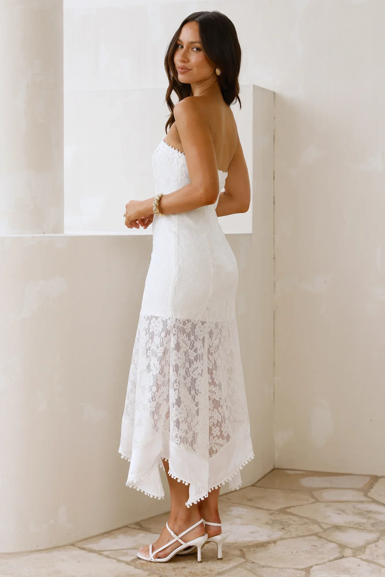 Luxe Petal Lace Strapless Maxi Dress White