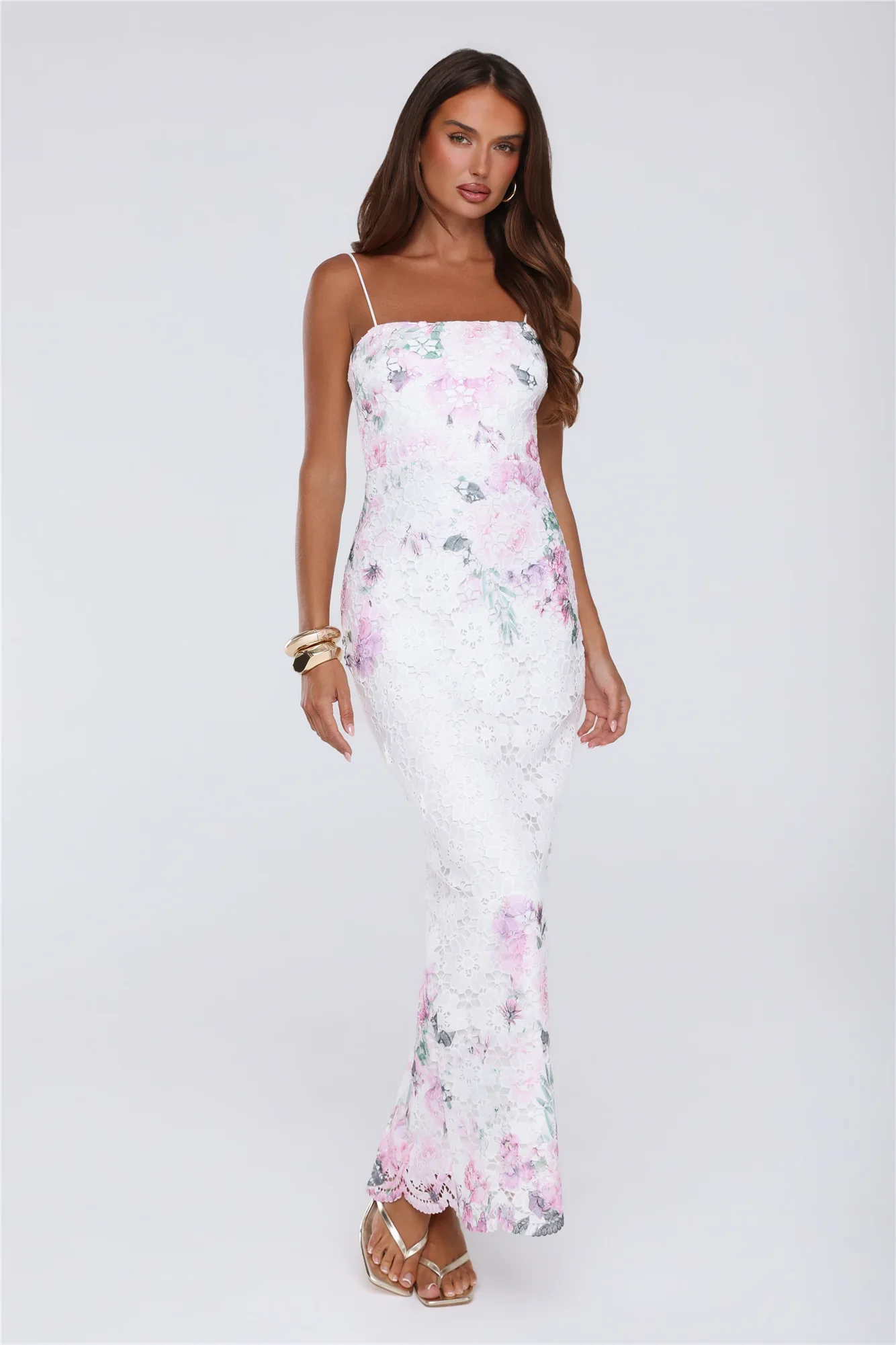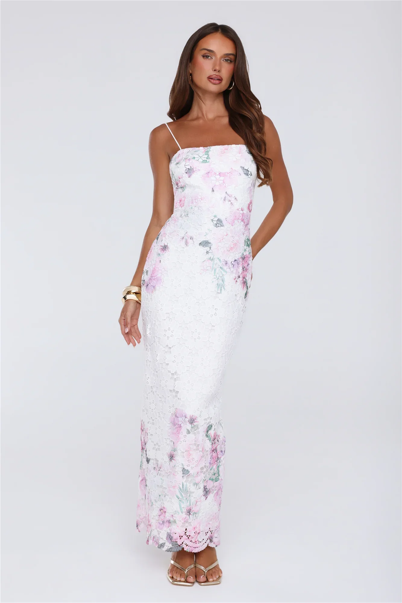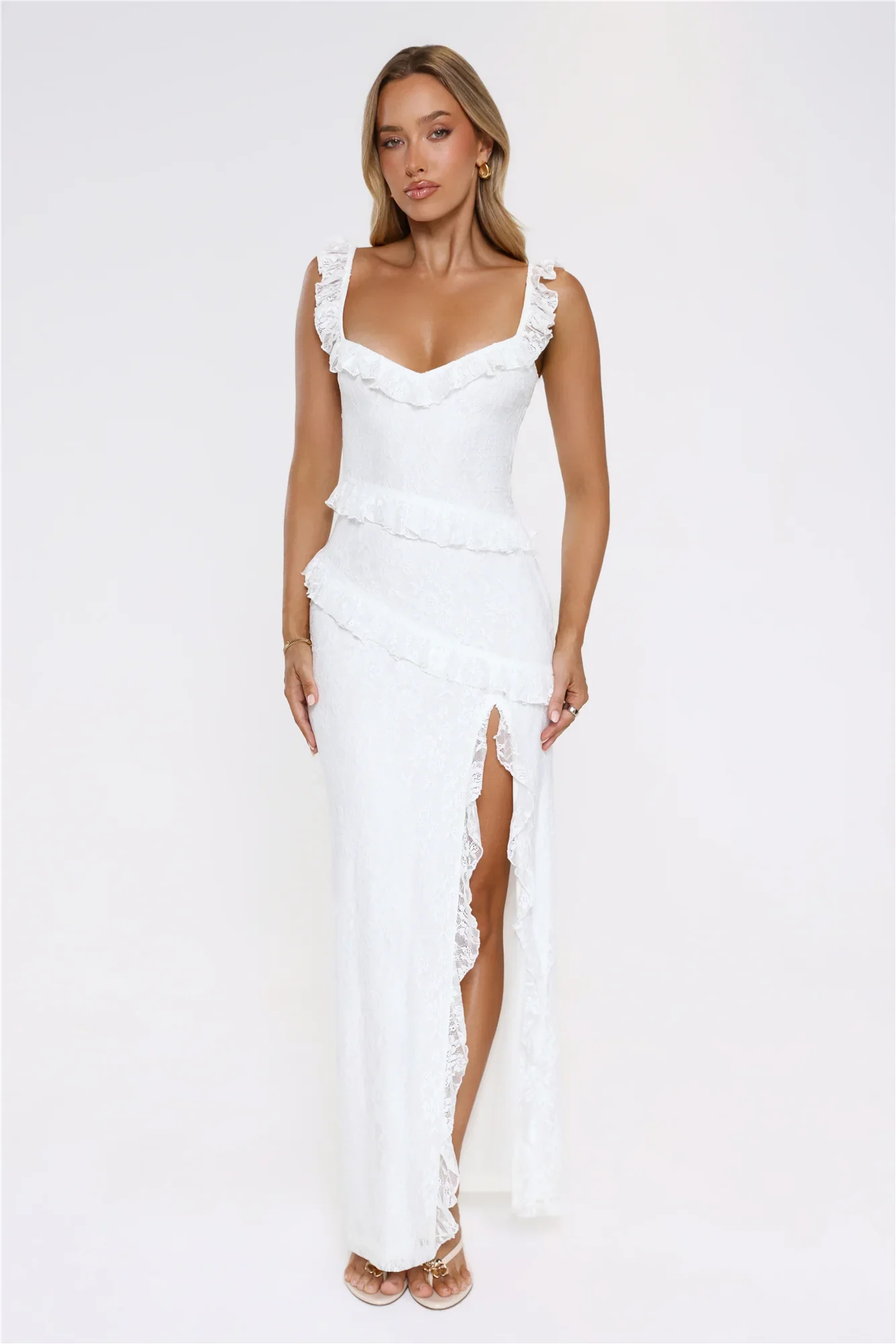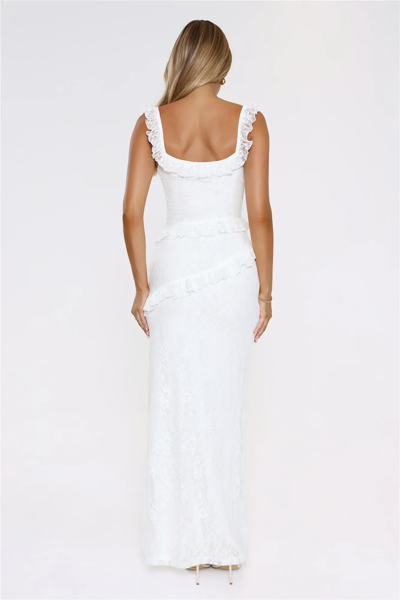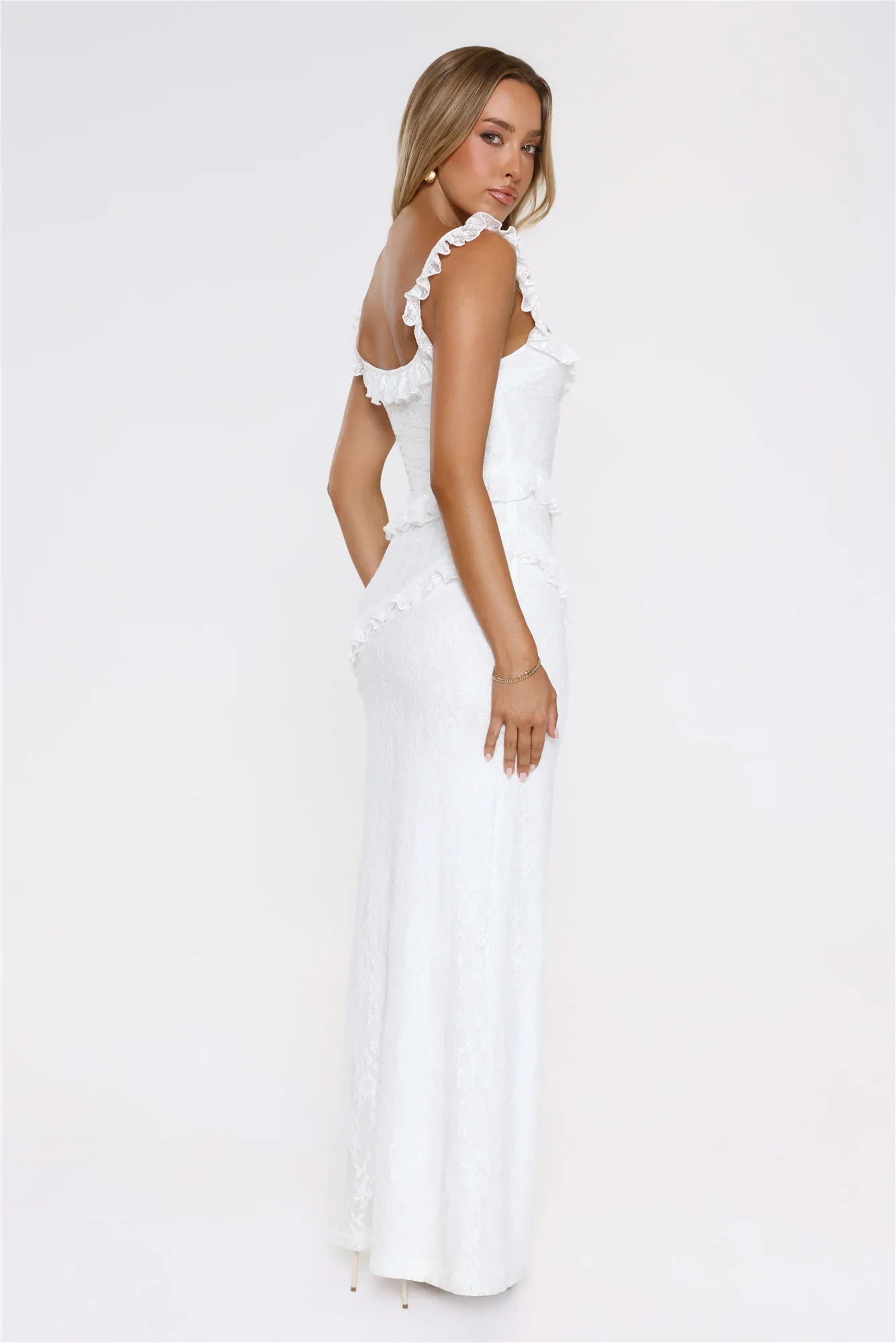 Golden Dusk Lace Maxi Dress White