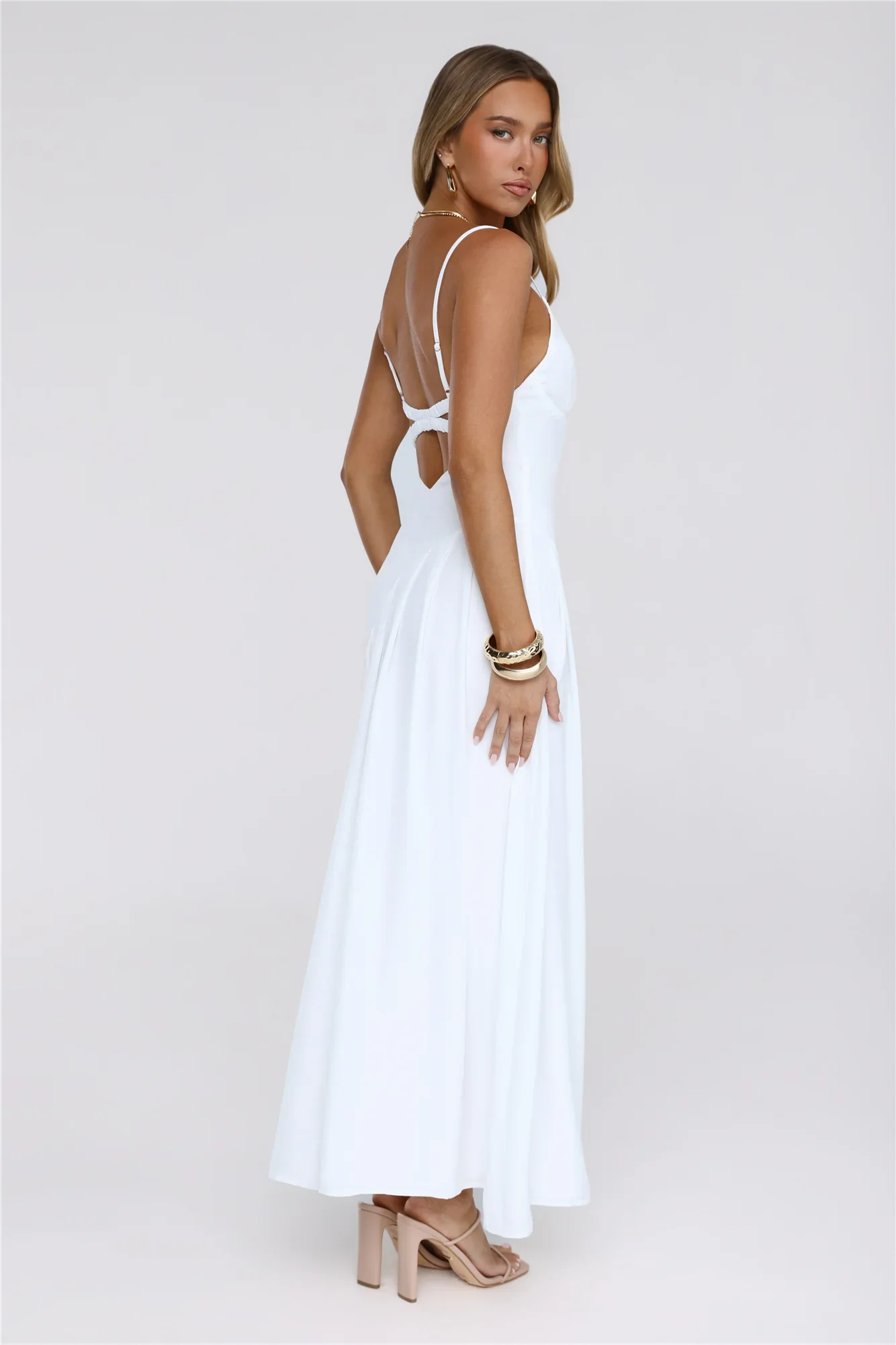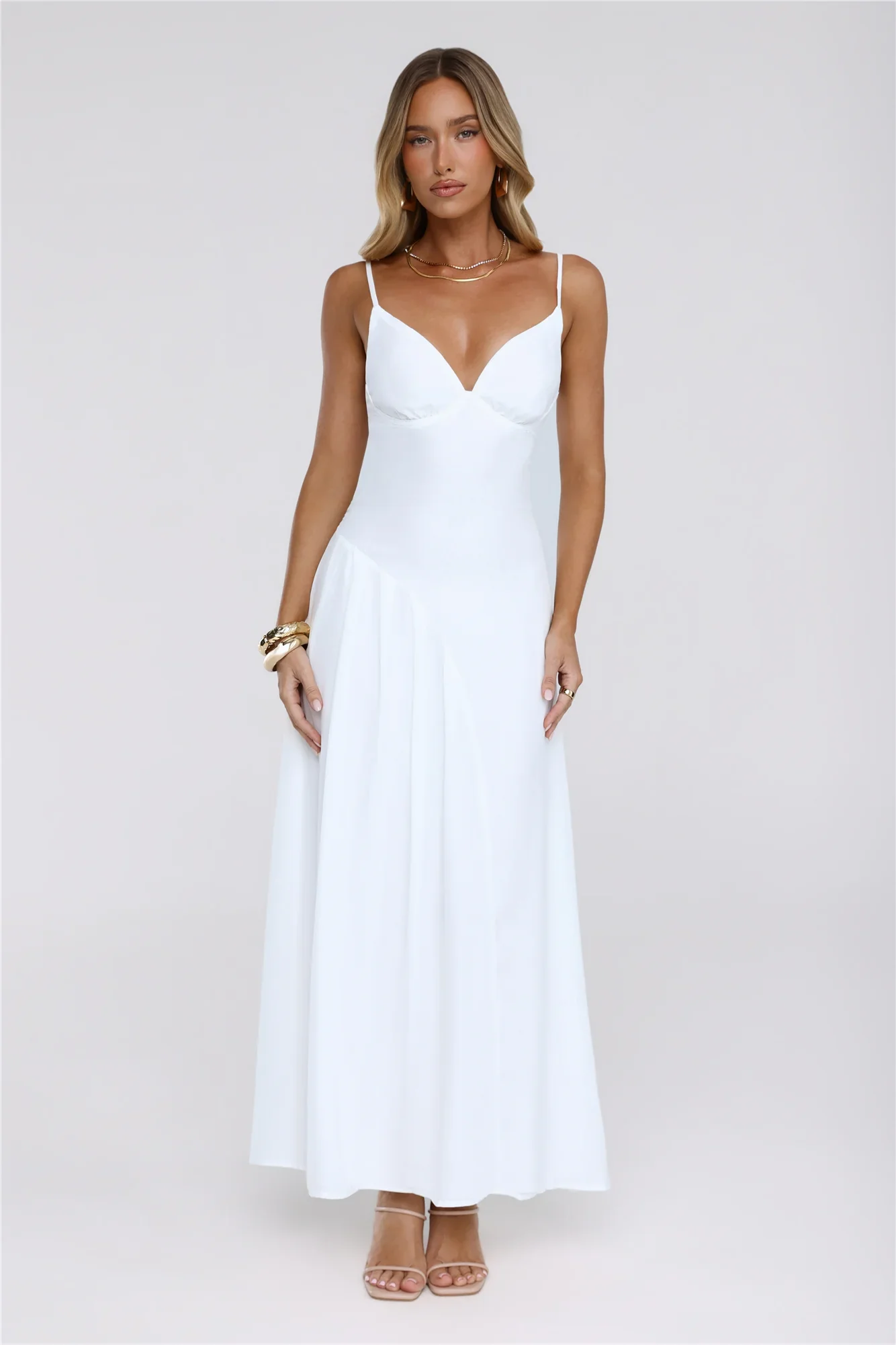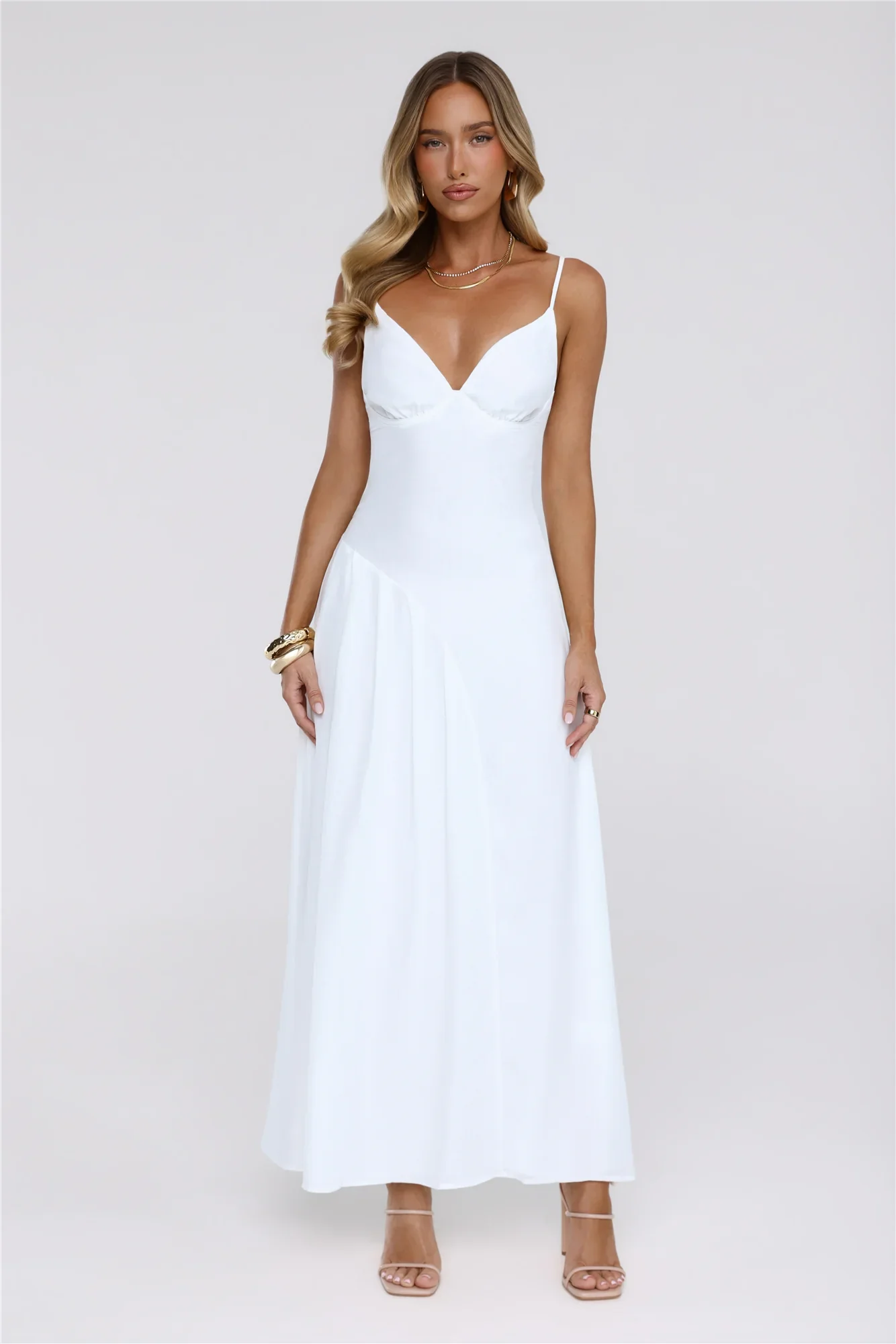 Gilded Whisper Maxi Dress White