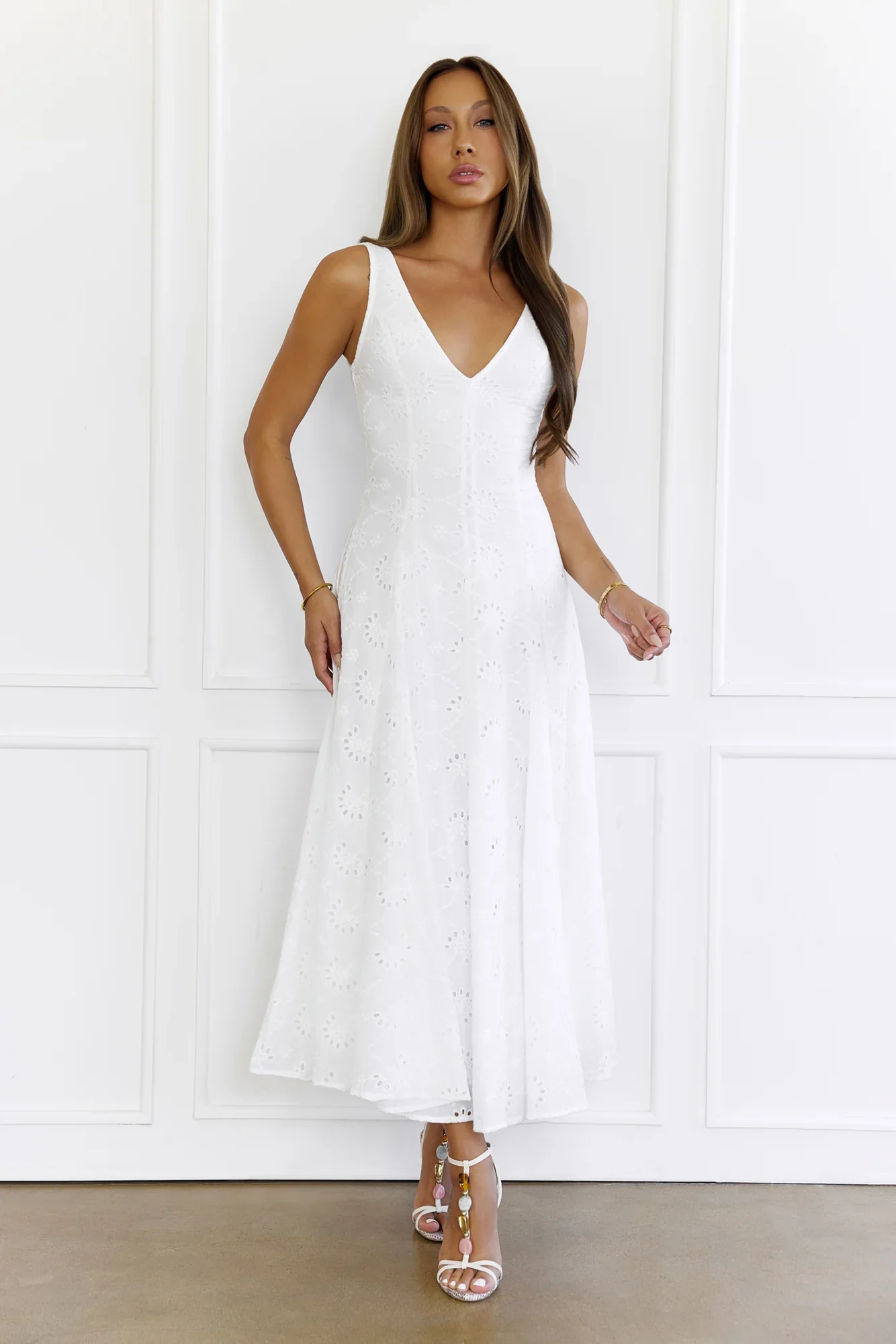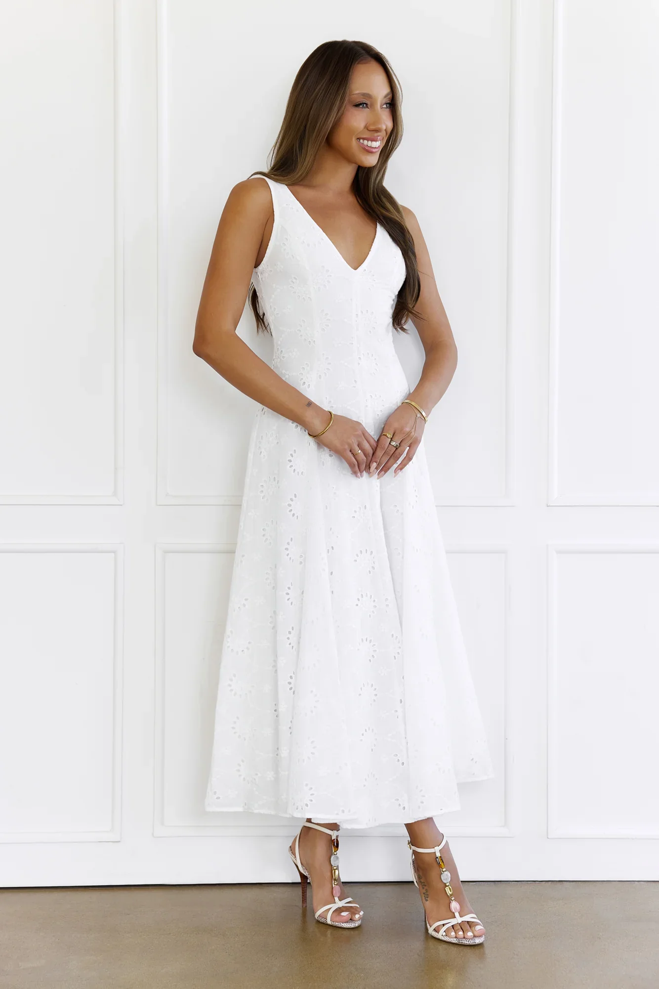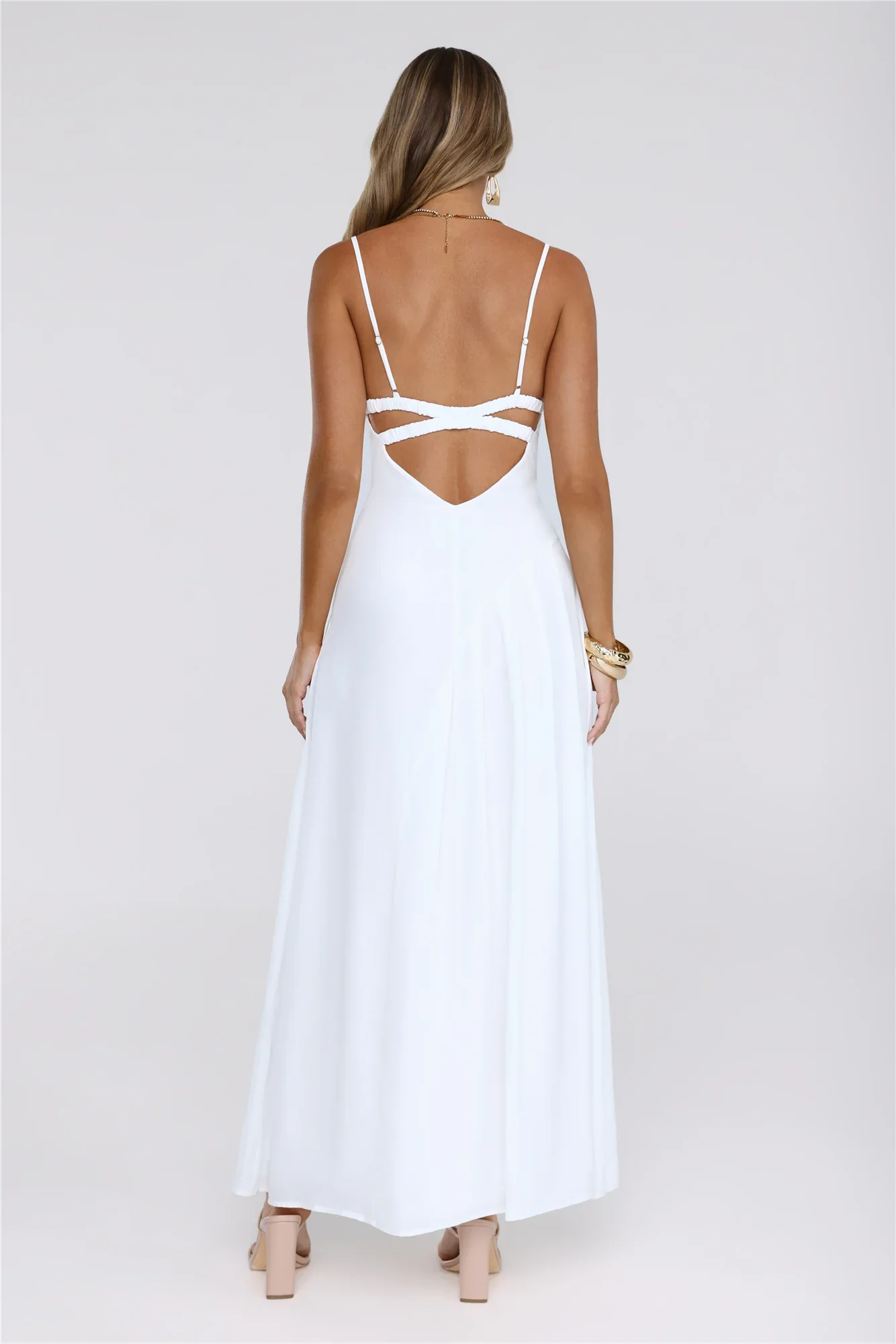 Gilded Whisper Maxi Dress White
