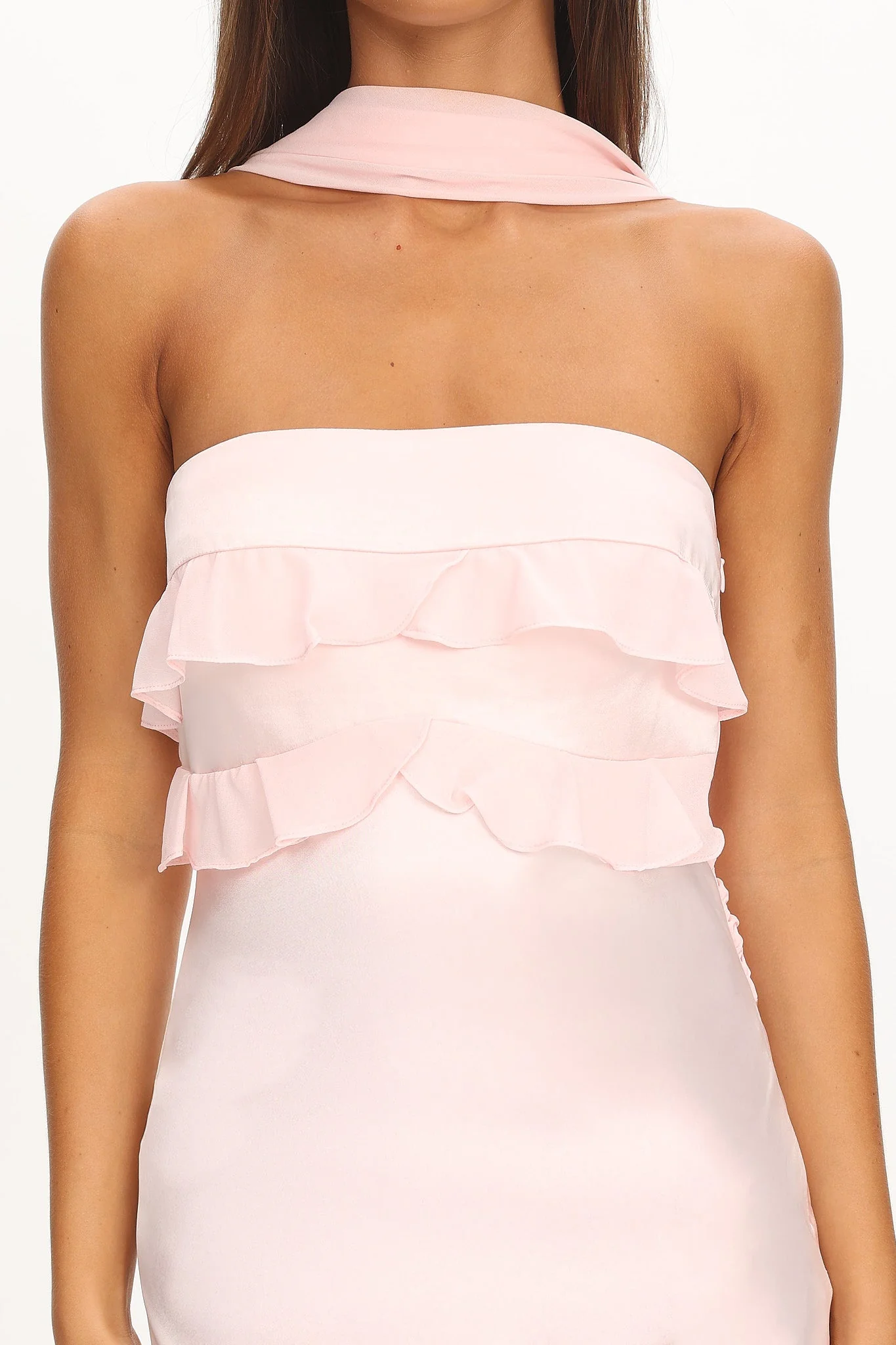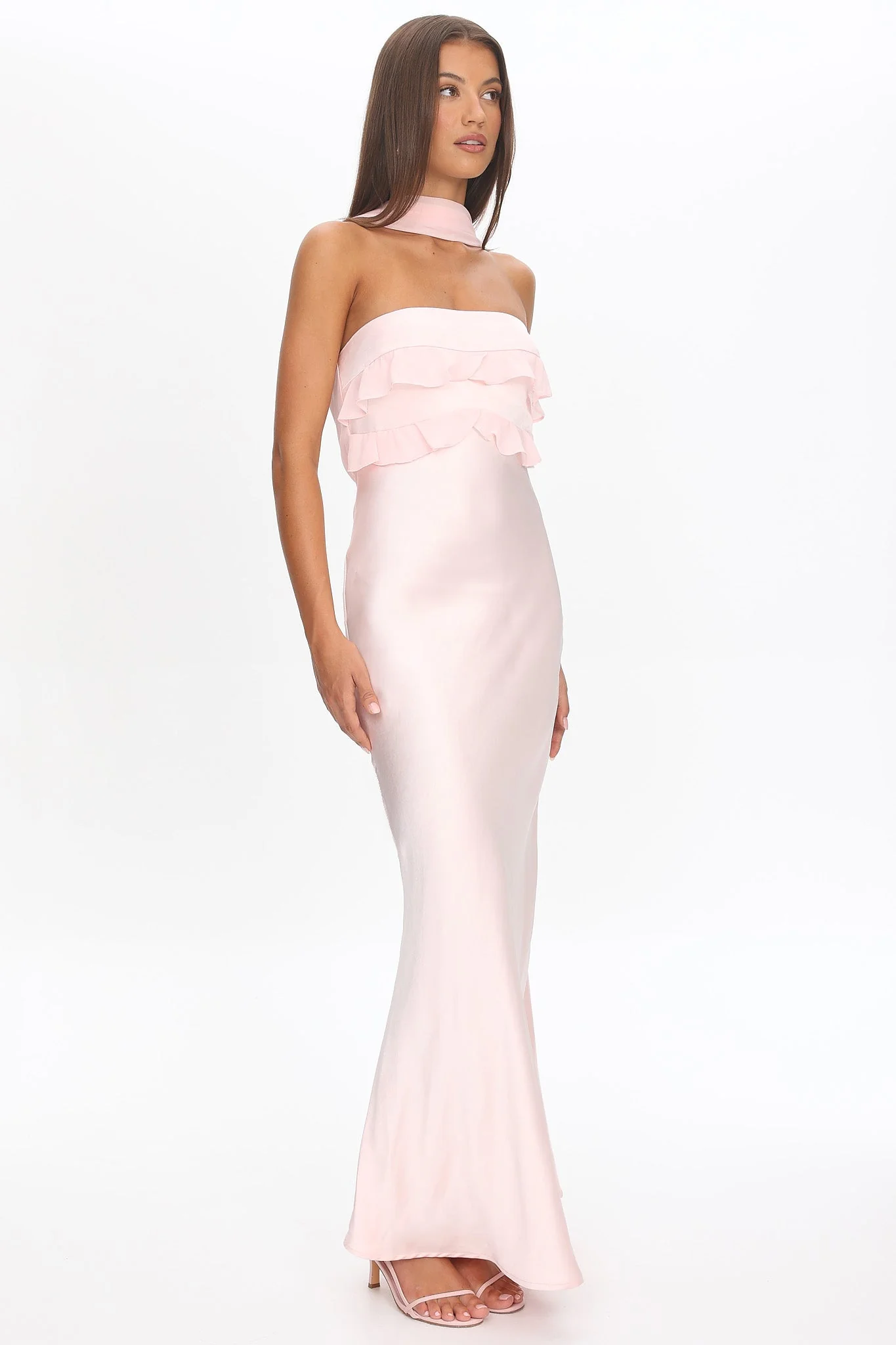 Damsel Reverse Halter Frill Trim Maxi Dress Blush