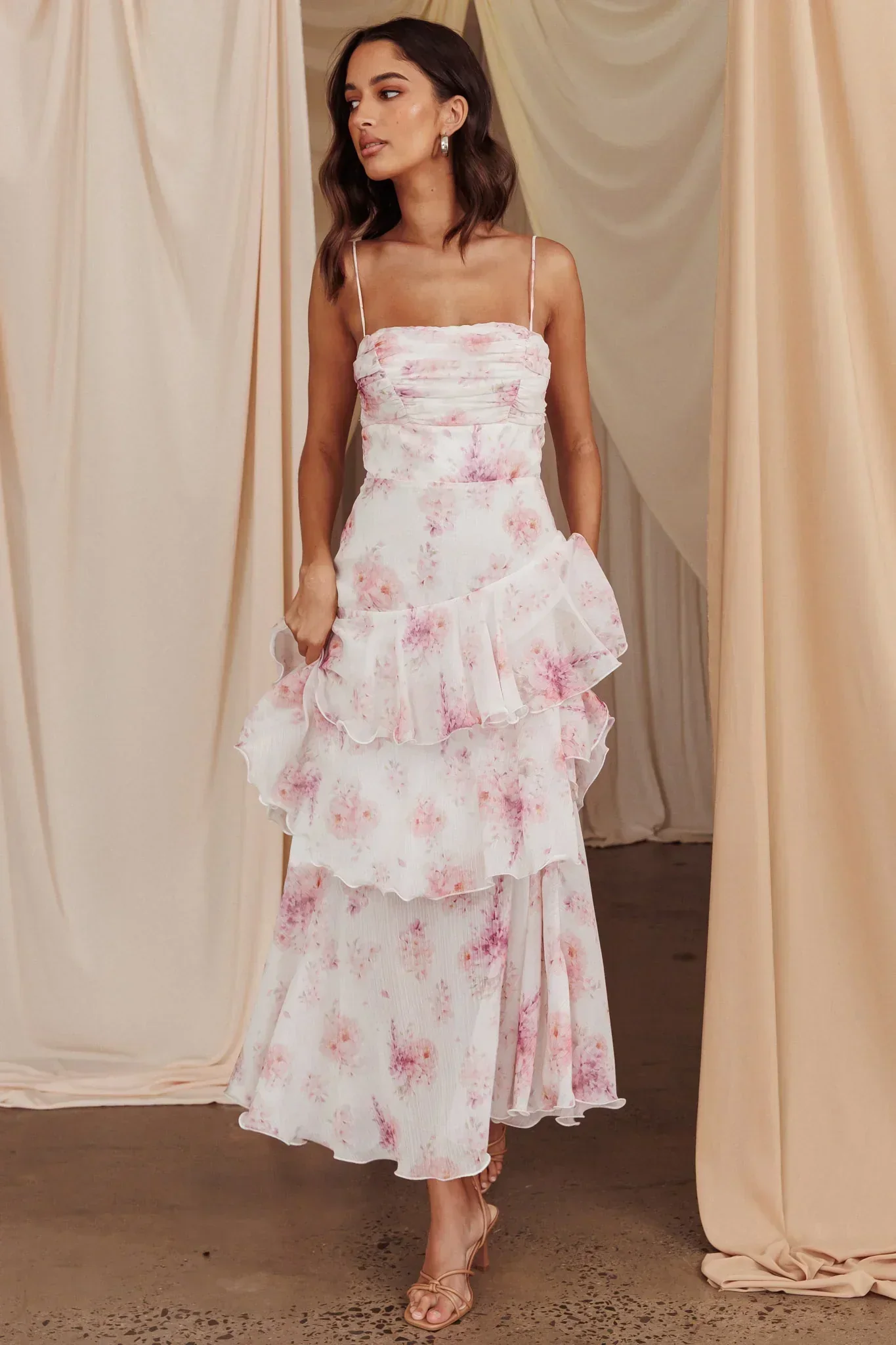Veda Tiered Layer Midi Dress Floral Blush