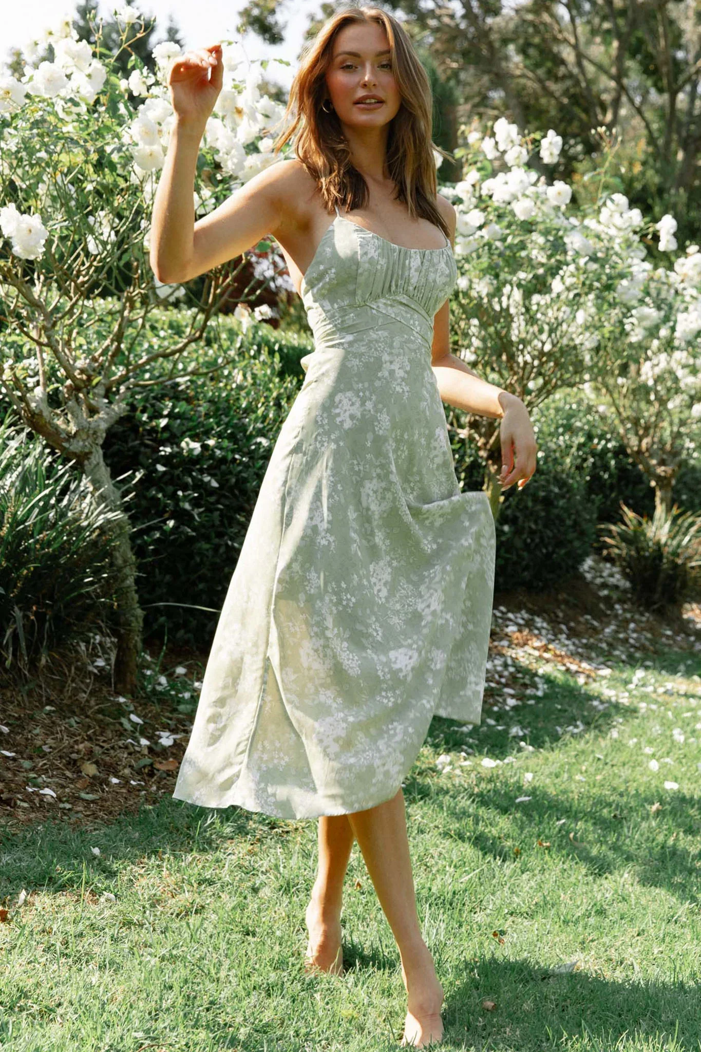 Linka Cami Strap Midi Dress Floral Print Avocado
