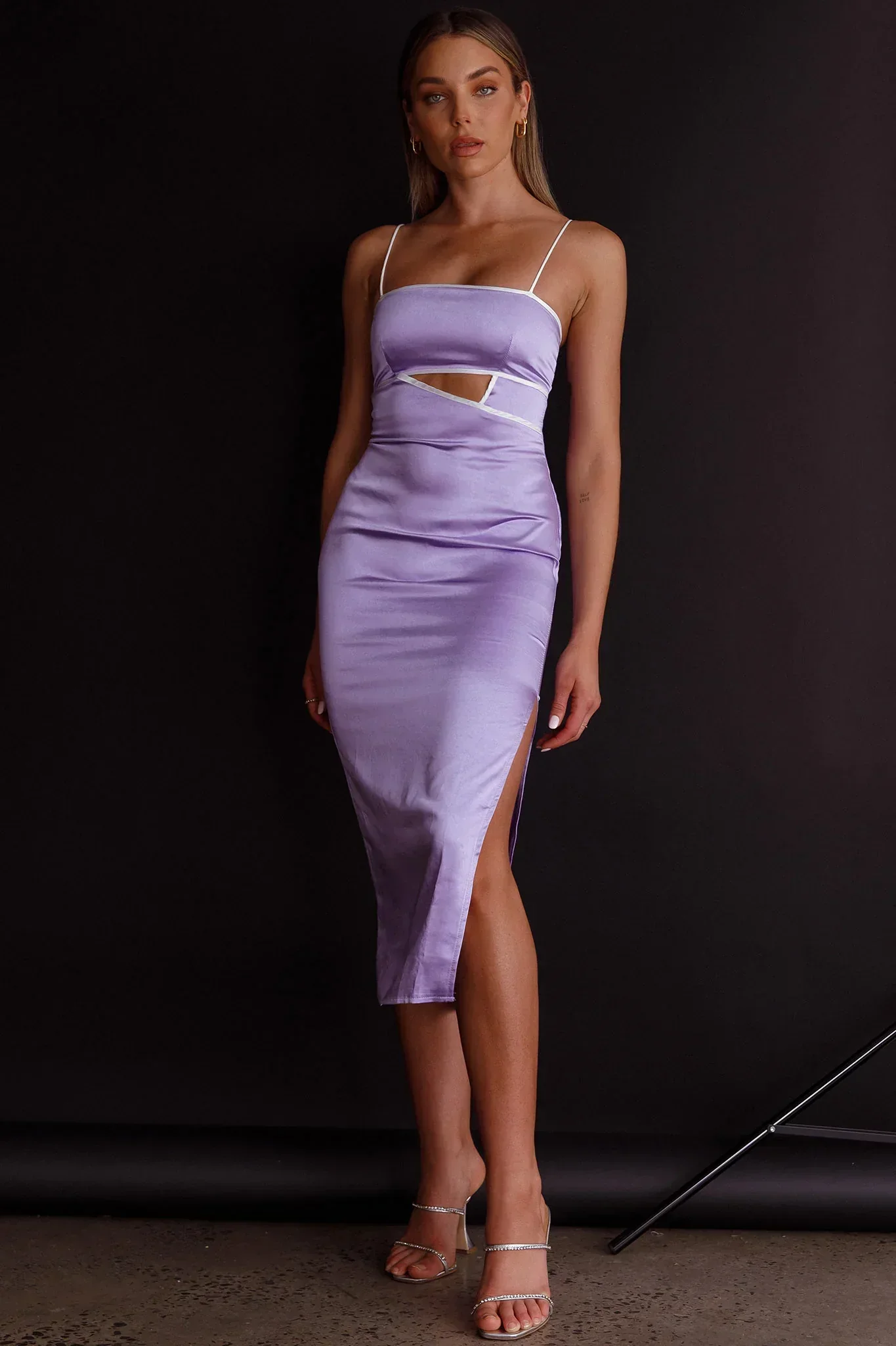 Laia Cut-Out Bodice Midi Dress Lilac