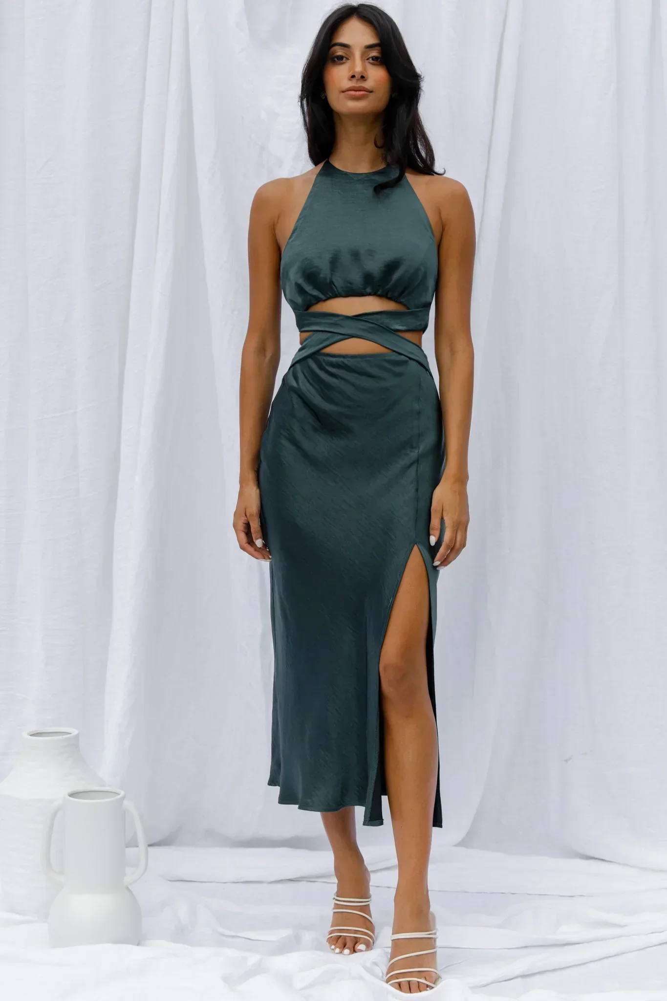 Social Butterfly Cut-Out Waist Midi Dress Jade