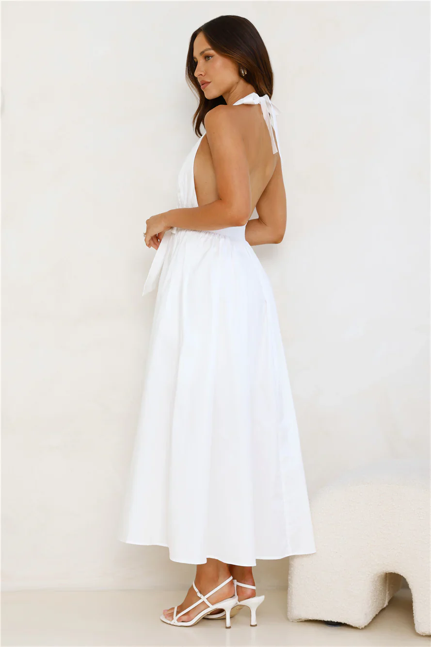 Moonlit Reverie Halter Midi Dress White