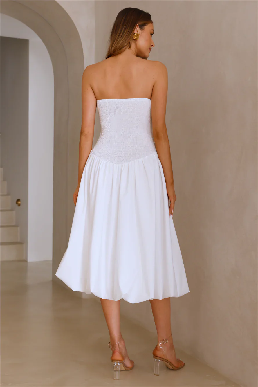 Adelaide Strapless Bubble Midi Dress White