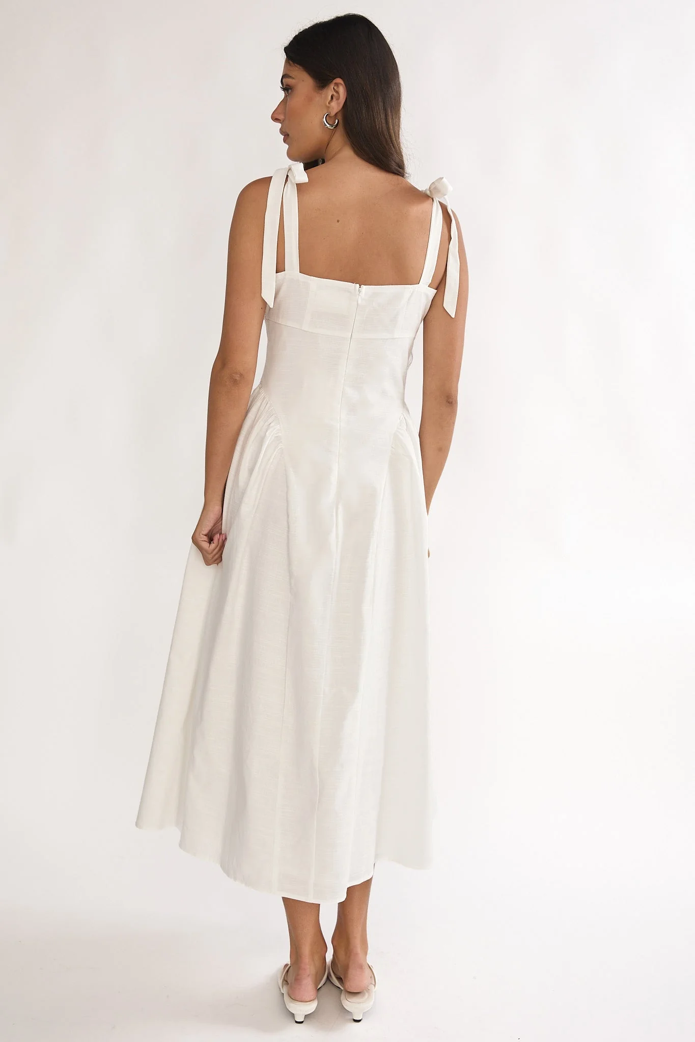 Khari Midi Dress - Linen Look Square A Line Dress in White