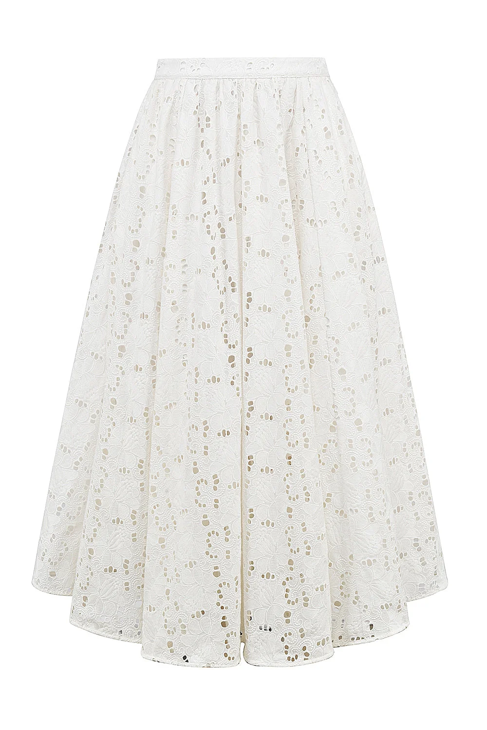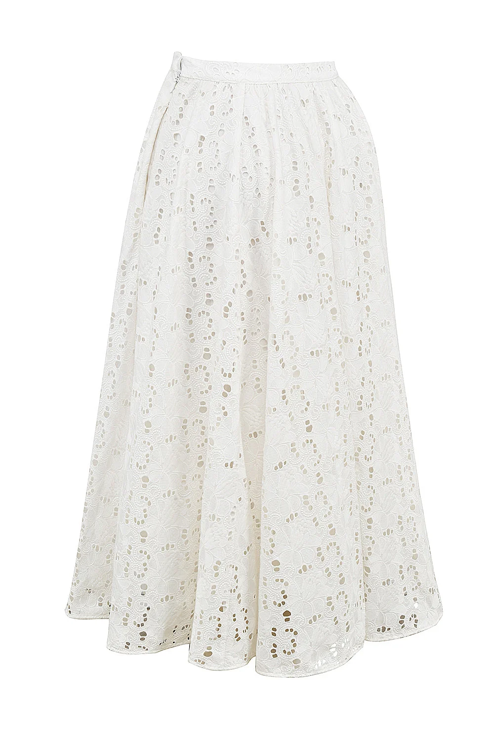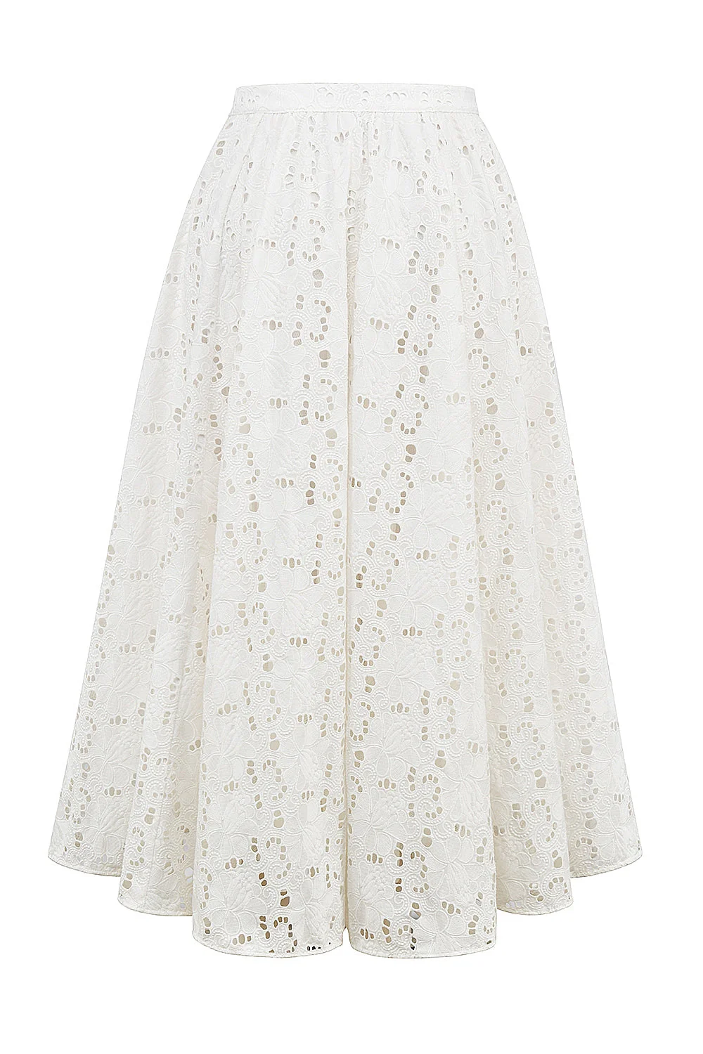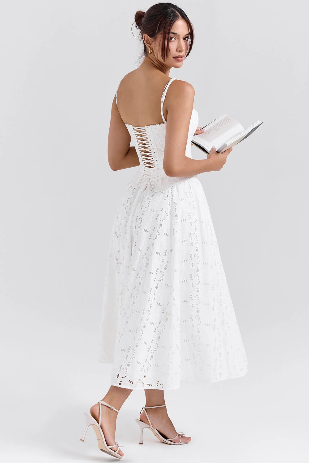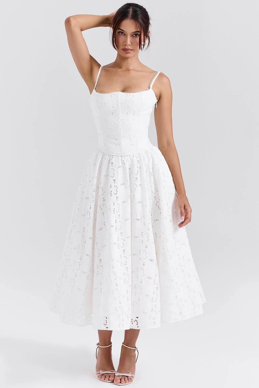 Walters Midi Dress - Square Neck Shirred Back Fit and Flare Panel Dress in White