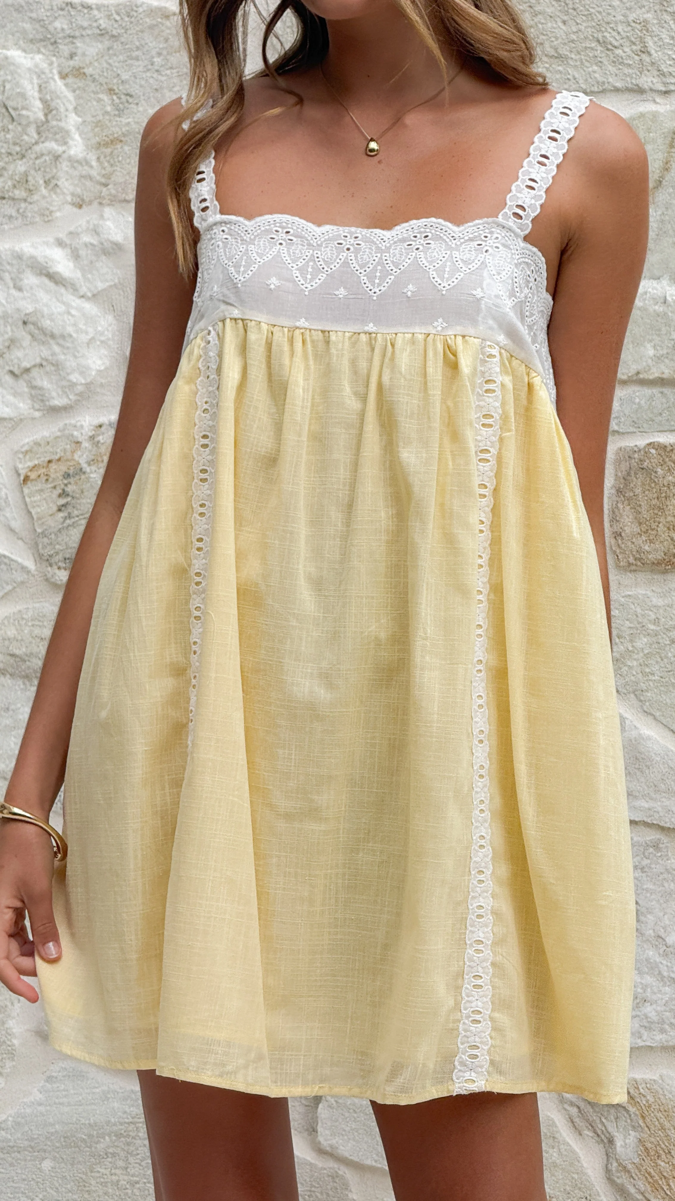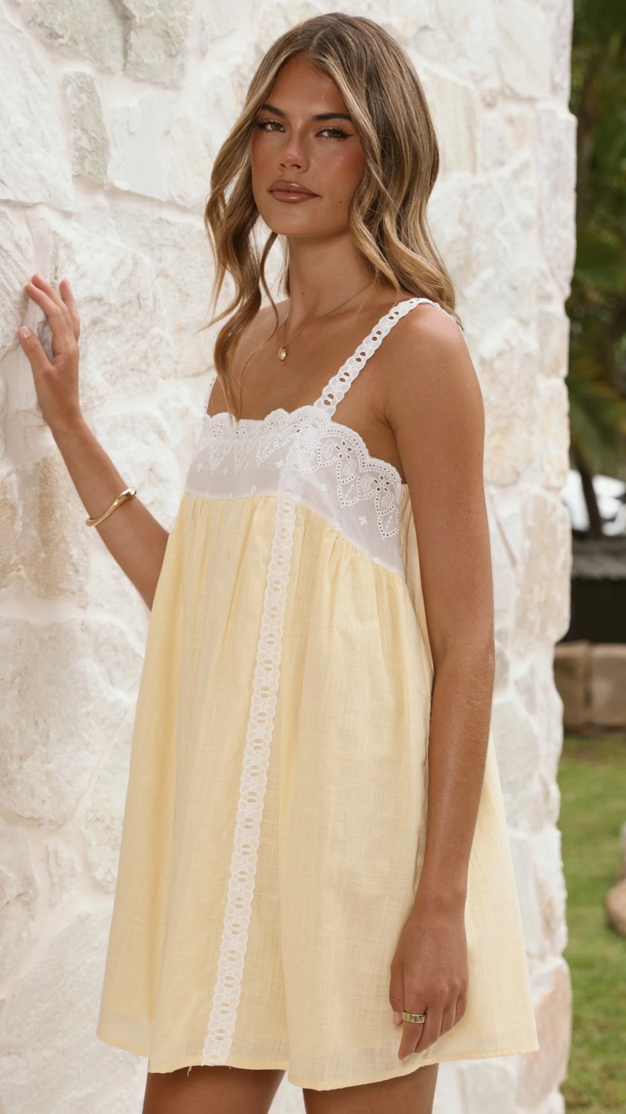 Singing Songbirds One Shoulder Mini Dress Yellow