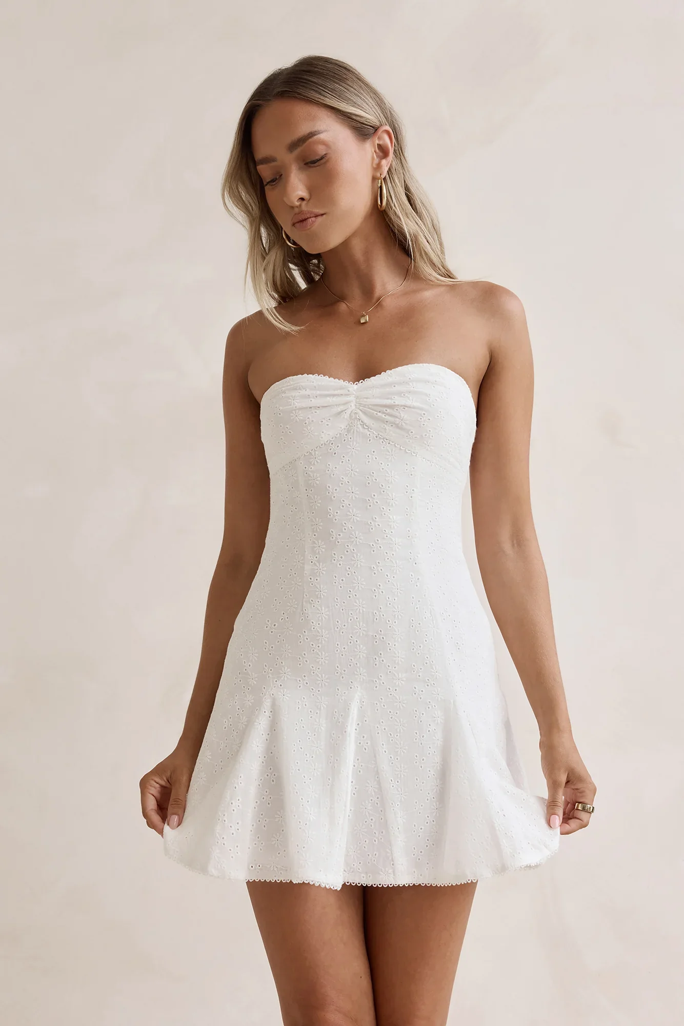 Daydream Diaries Strapless Mini Dress Off White