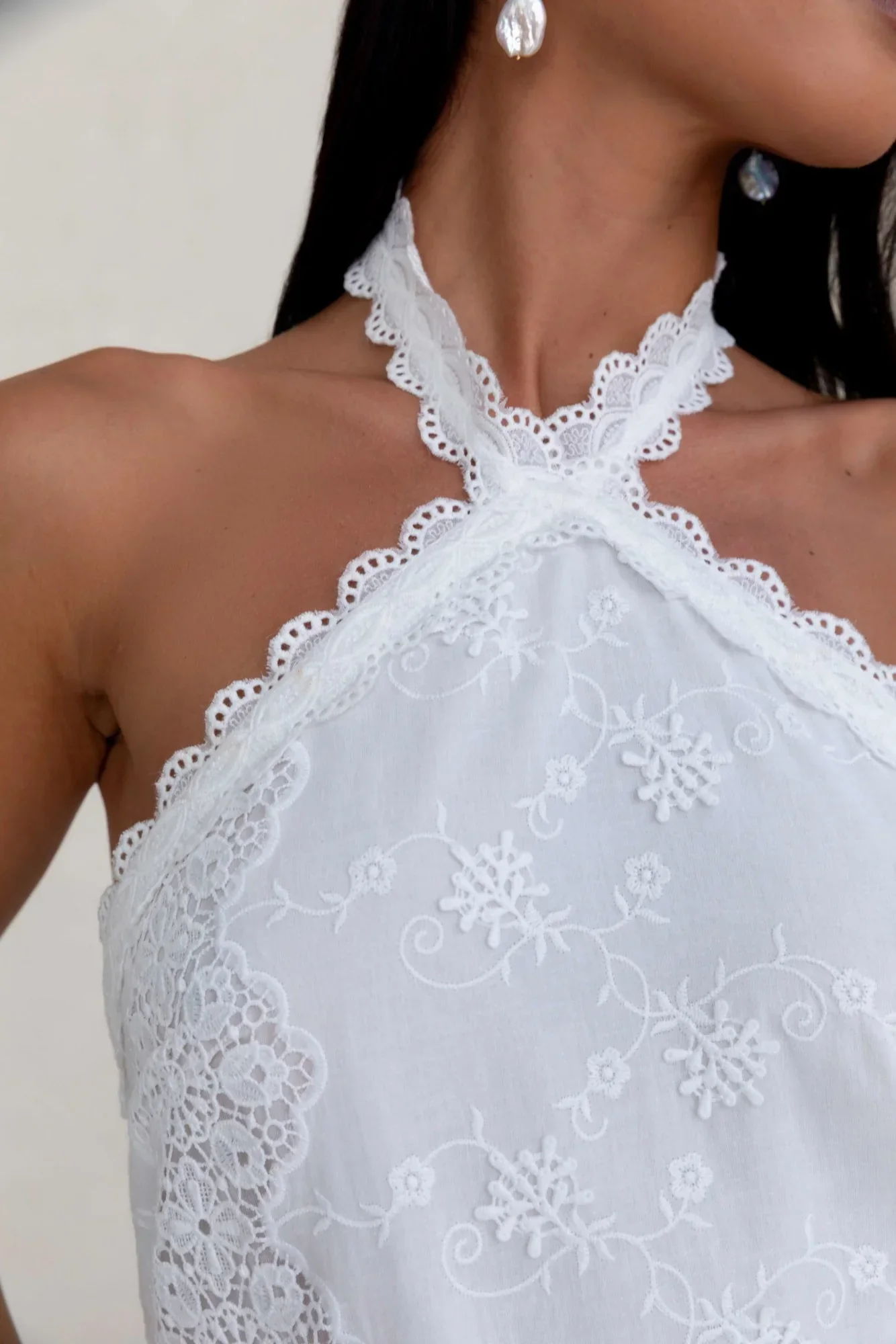 Brunch Date Ready Eyelet A-Line Mini Dress