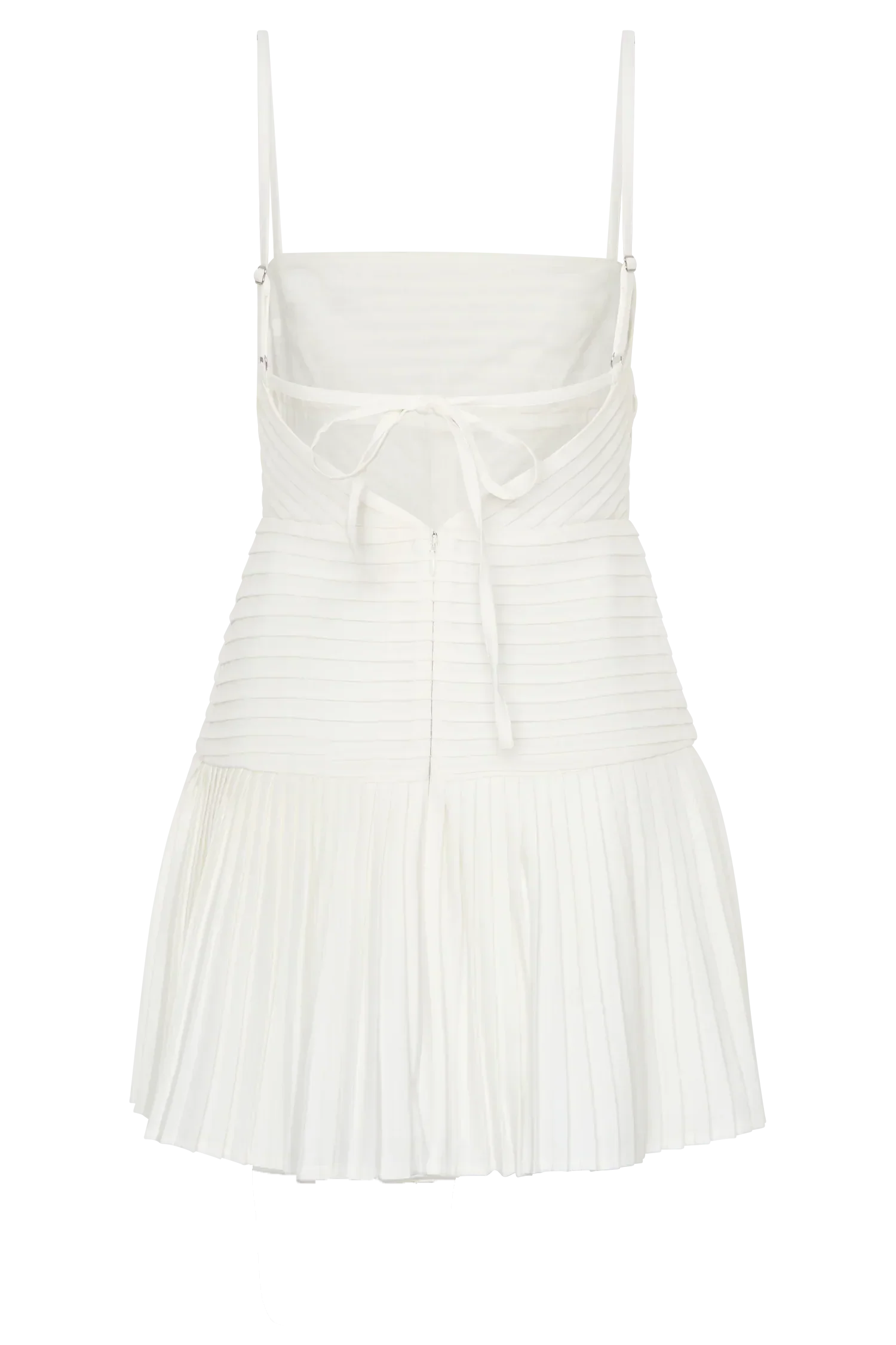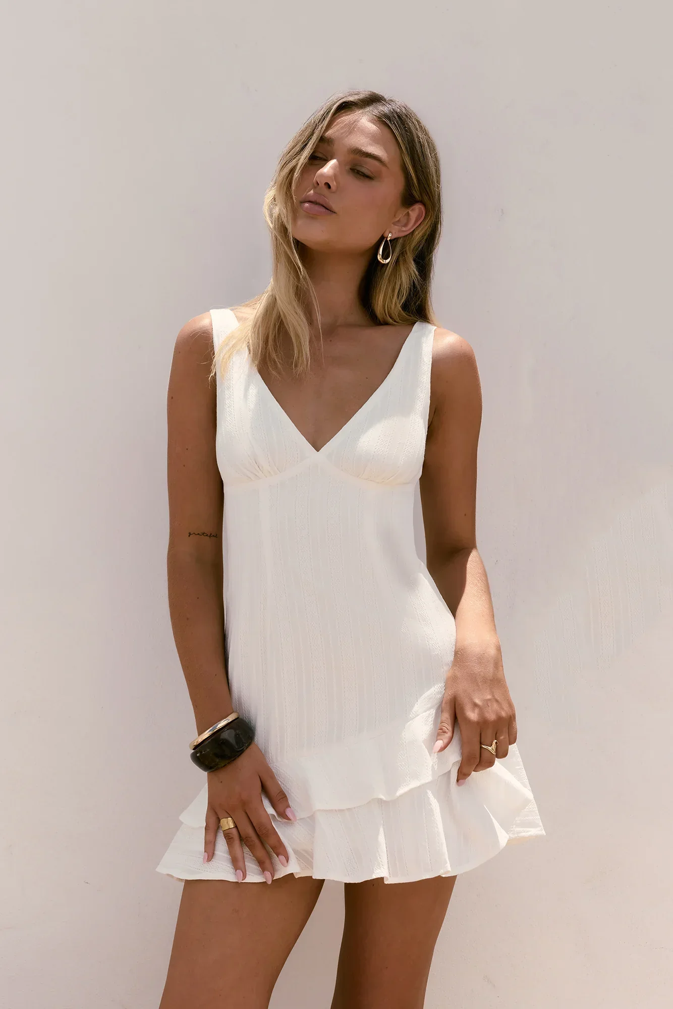 Leonora Sleeveless Suiting Mini Dress With Ruffle - Ivory