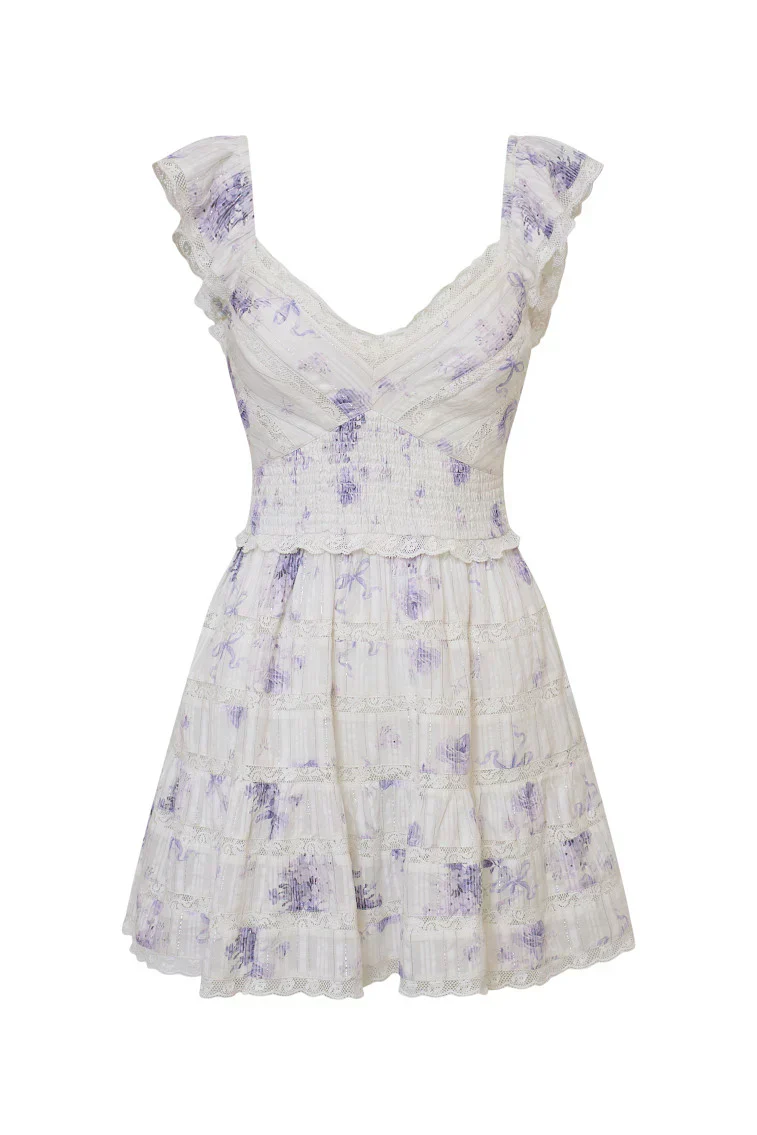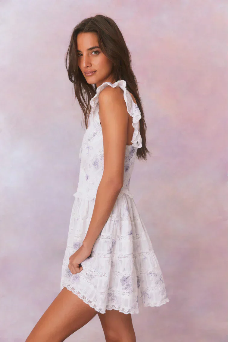 Lace-Up Ruffled Tiered Mini Dress in Tan Print