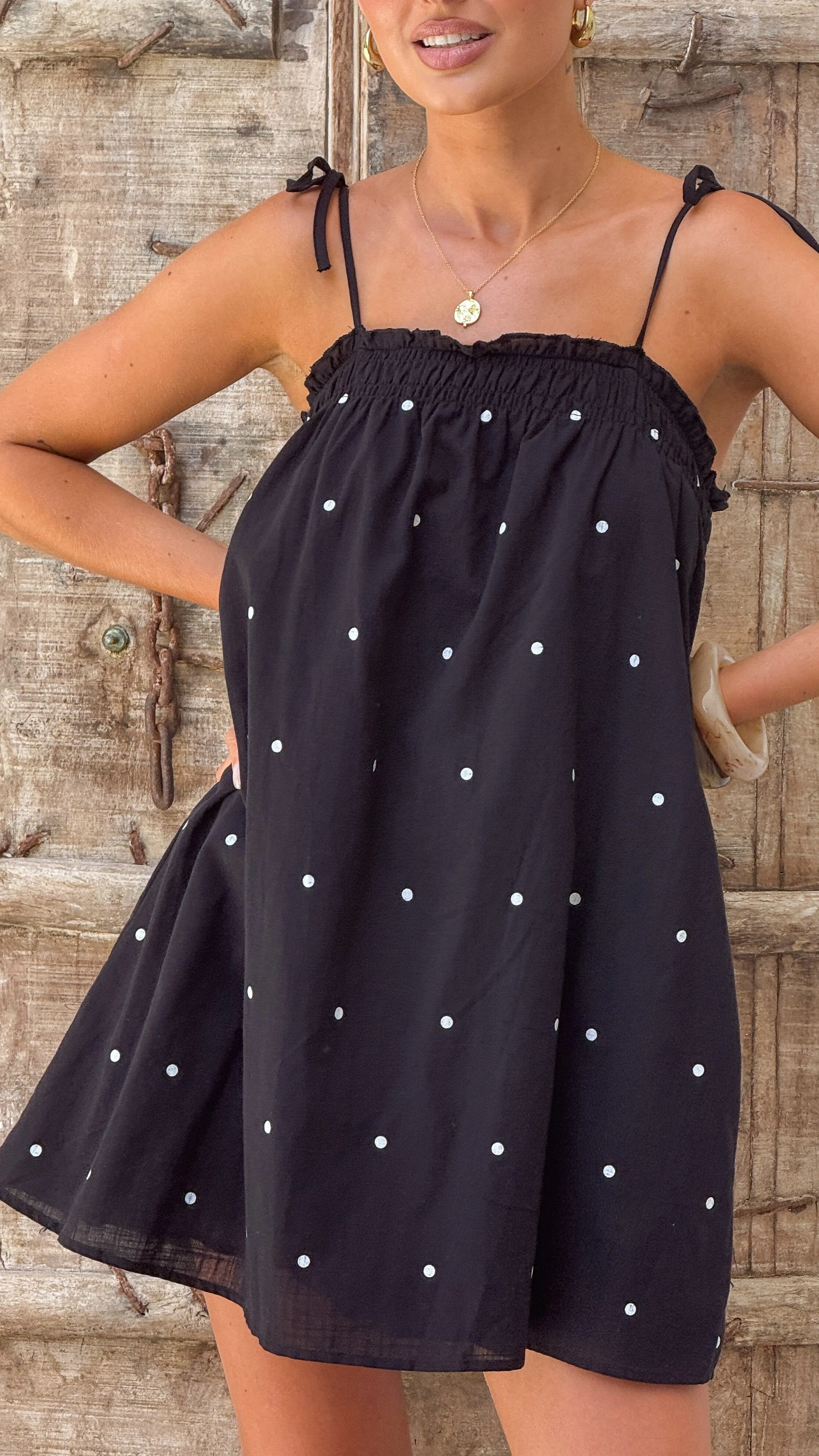 Sloane Mini Dress - Black Polka