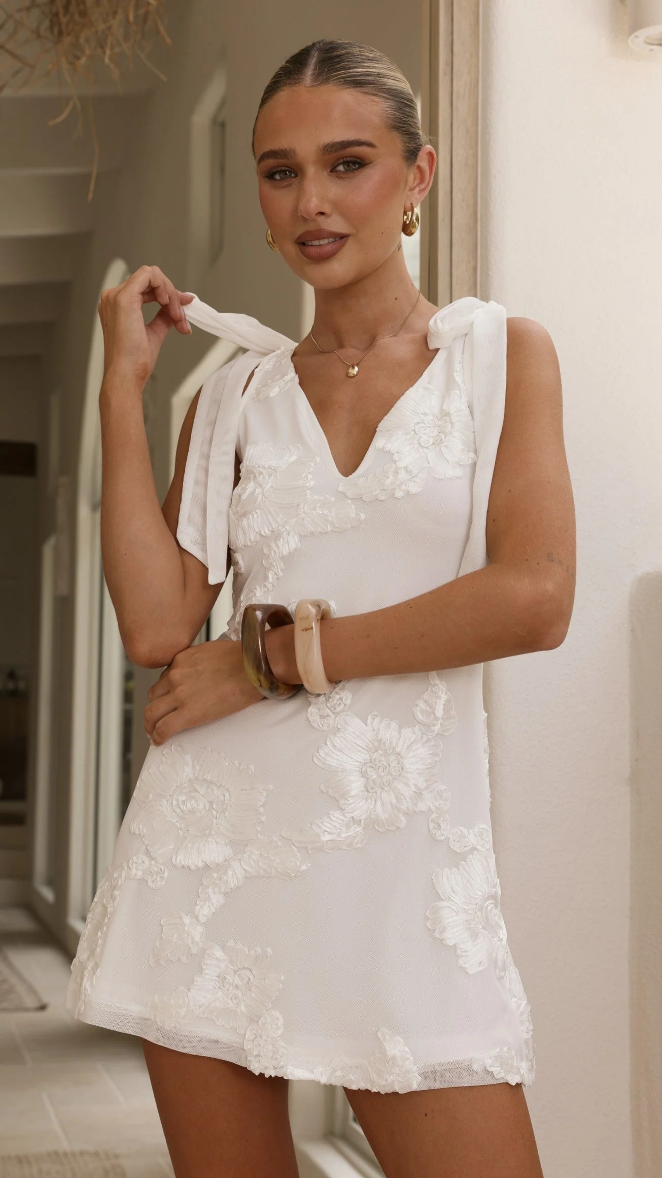 Usha Tie Strap Mini Dress - White