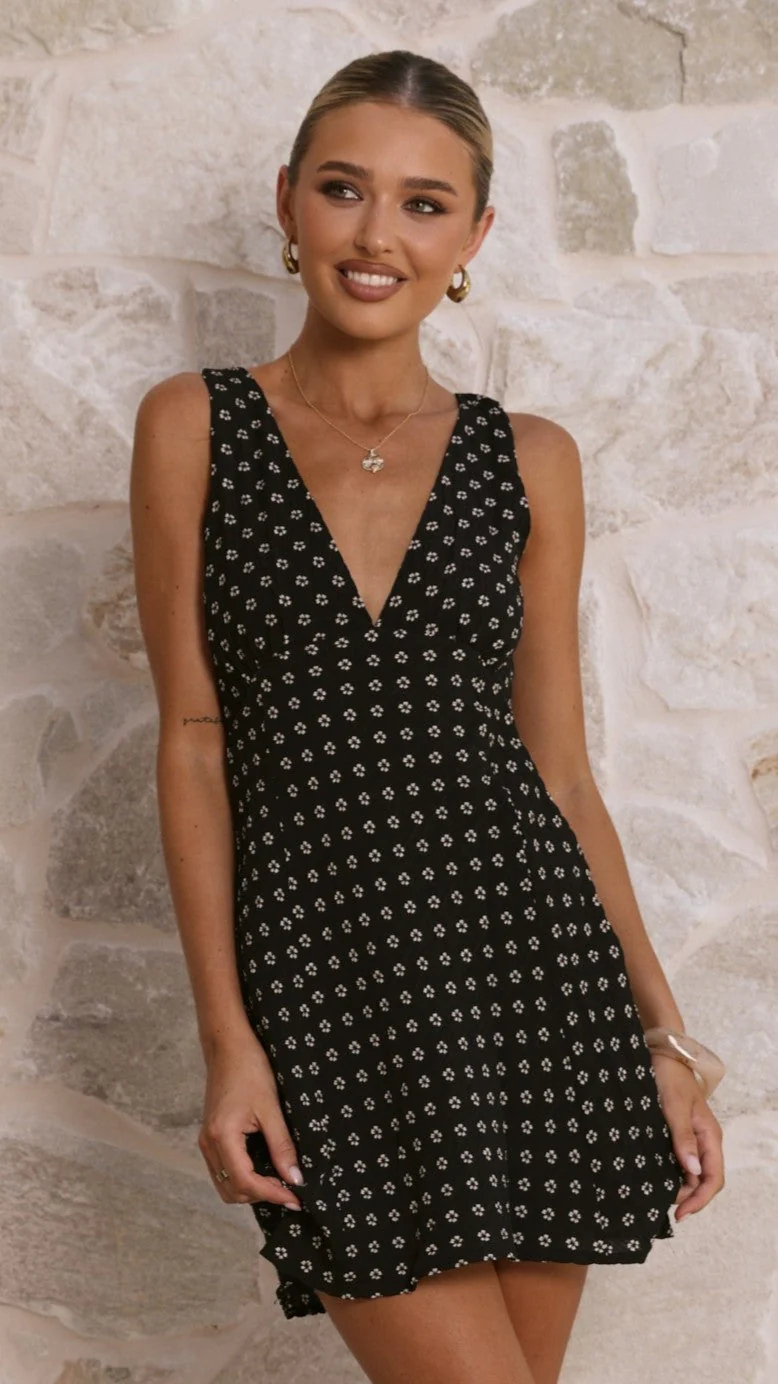 Gabriella Mini Dress - Black Floral