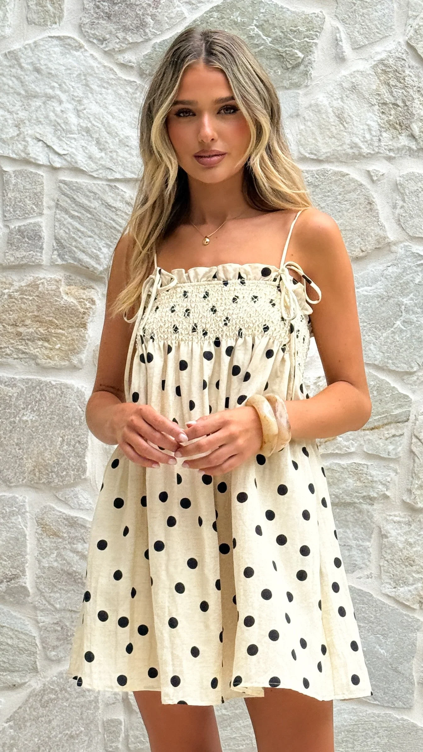 Wyomie Mini Dress - Natural / Black Polka