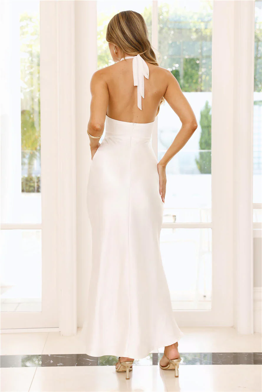 Dream Design Halter Satin Maxi Dress White