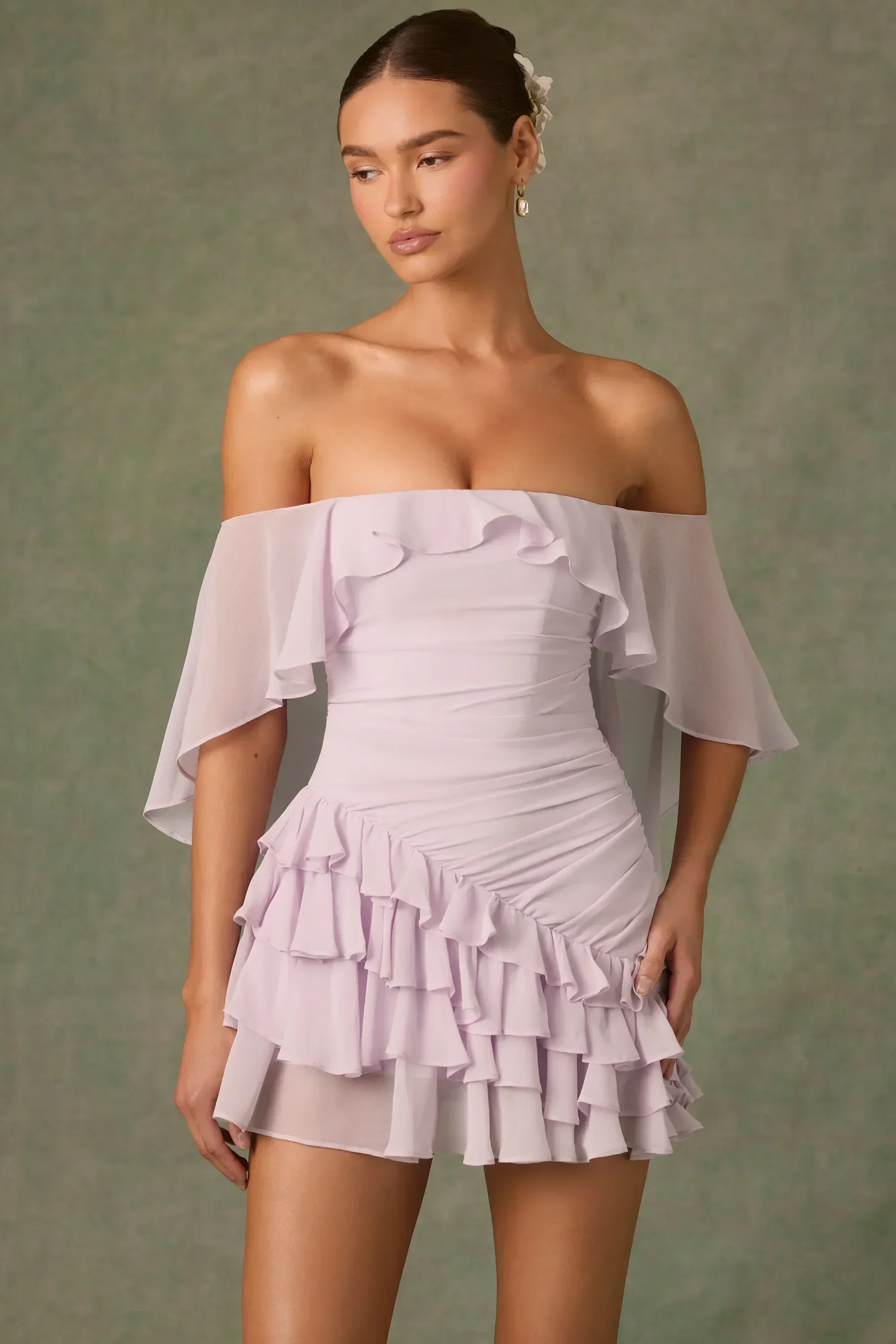 Off-Shoulder Ruffled Mini Dress in Lilac