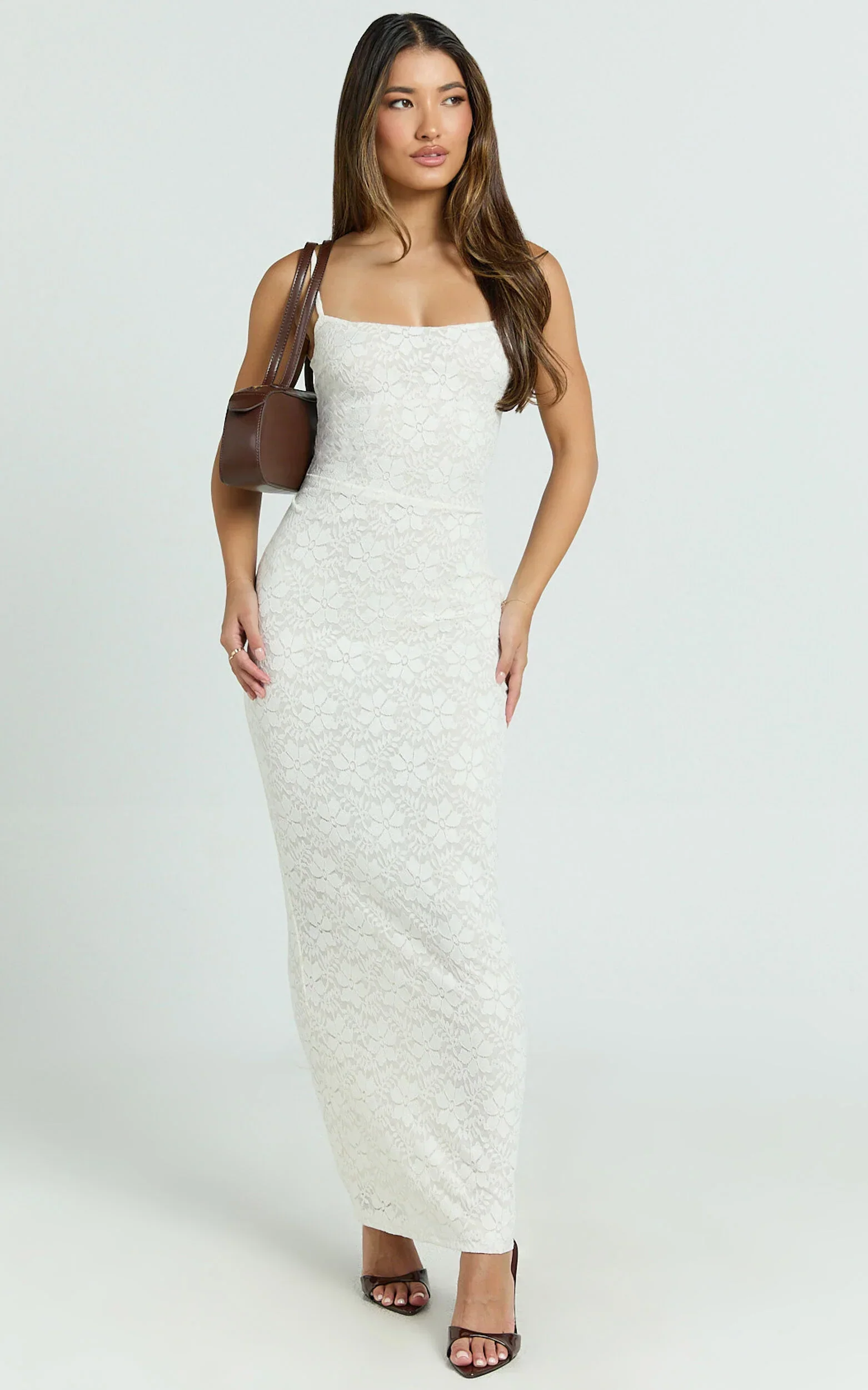 Carly Maxi Dress - Stretch Lace Scoop Neck Dress in Off White