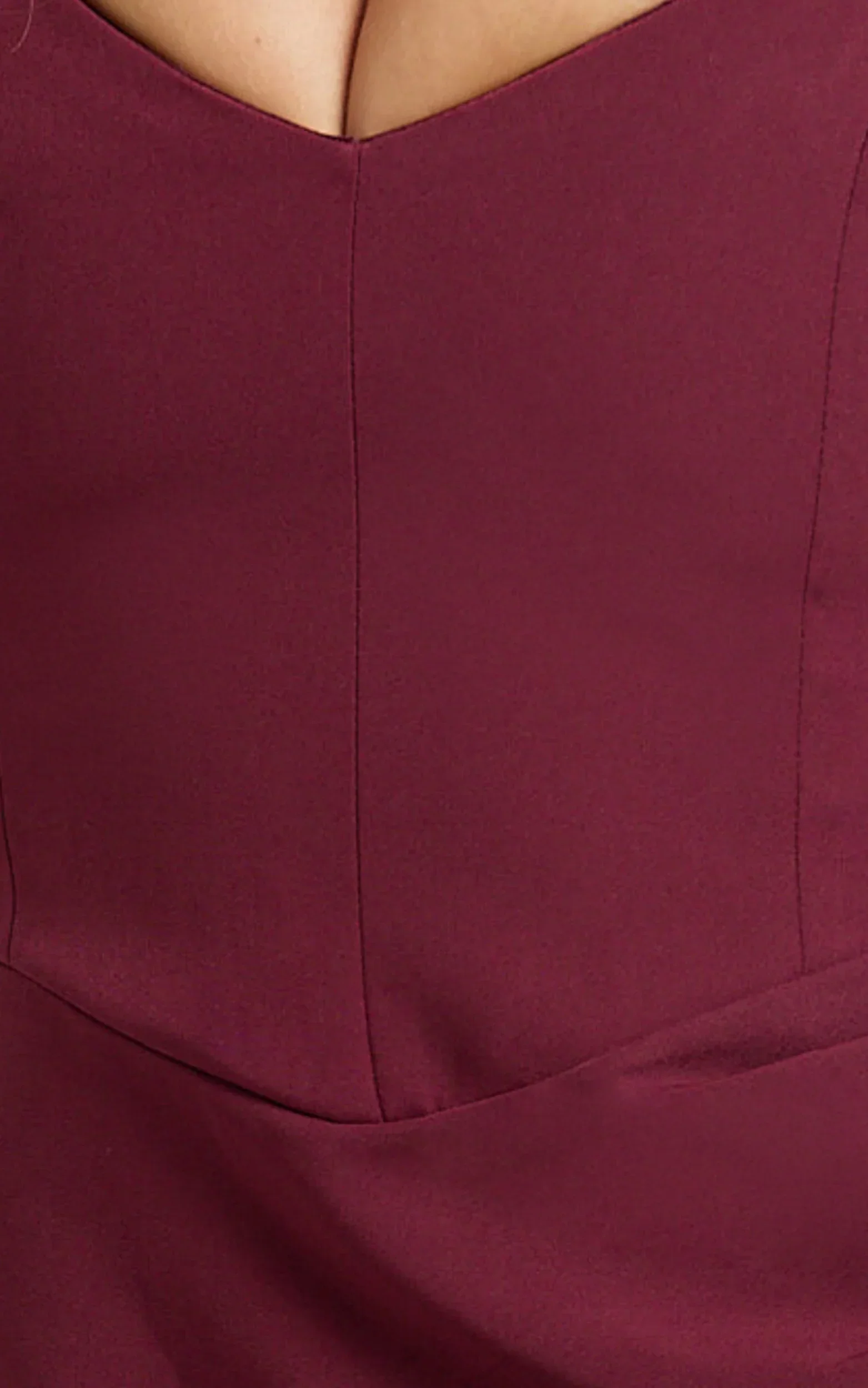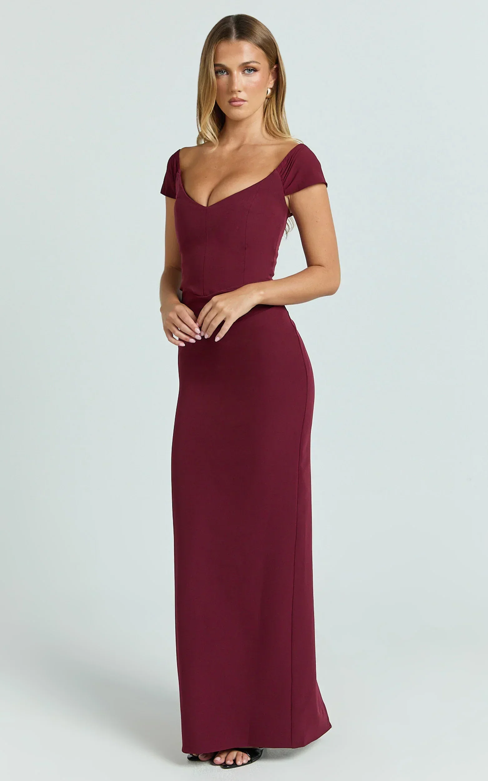 Veronika Maxi Dress - Off Shoulder Plunge High Split Dress in Wine