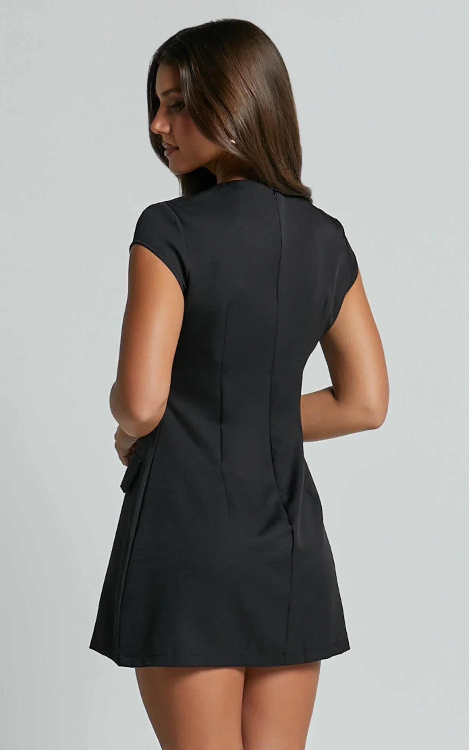 Wyatt Mini Dress - Short Sleeve Corset A Line Dress in Black