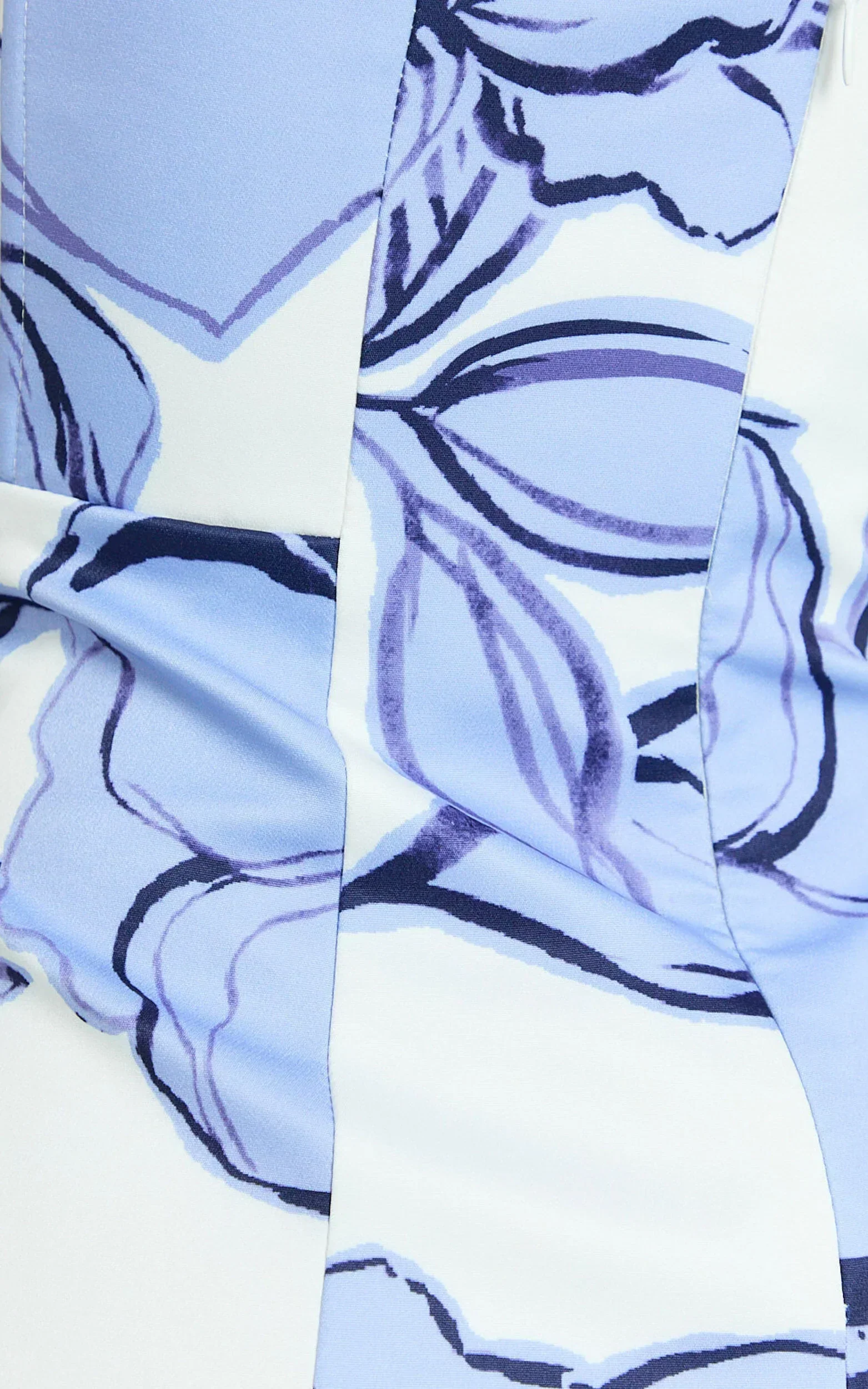 Catharine Mini Dress - Strapless A Line Dress in Blue Floral