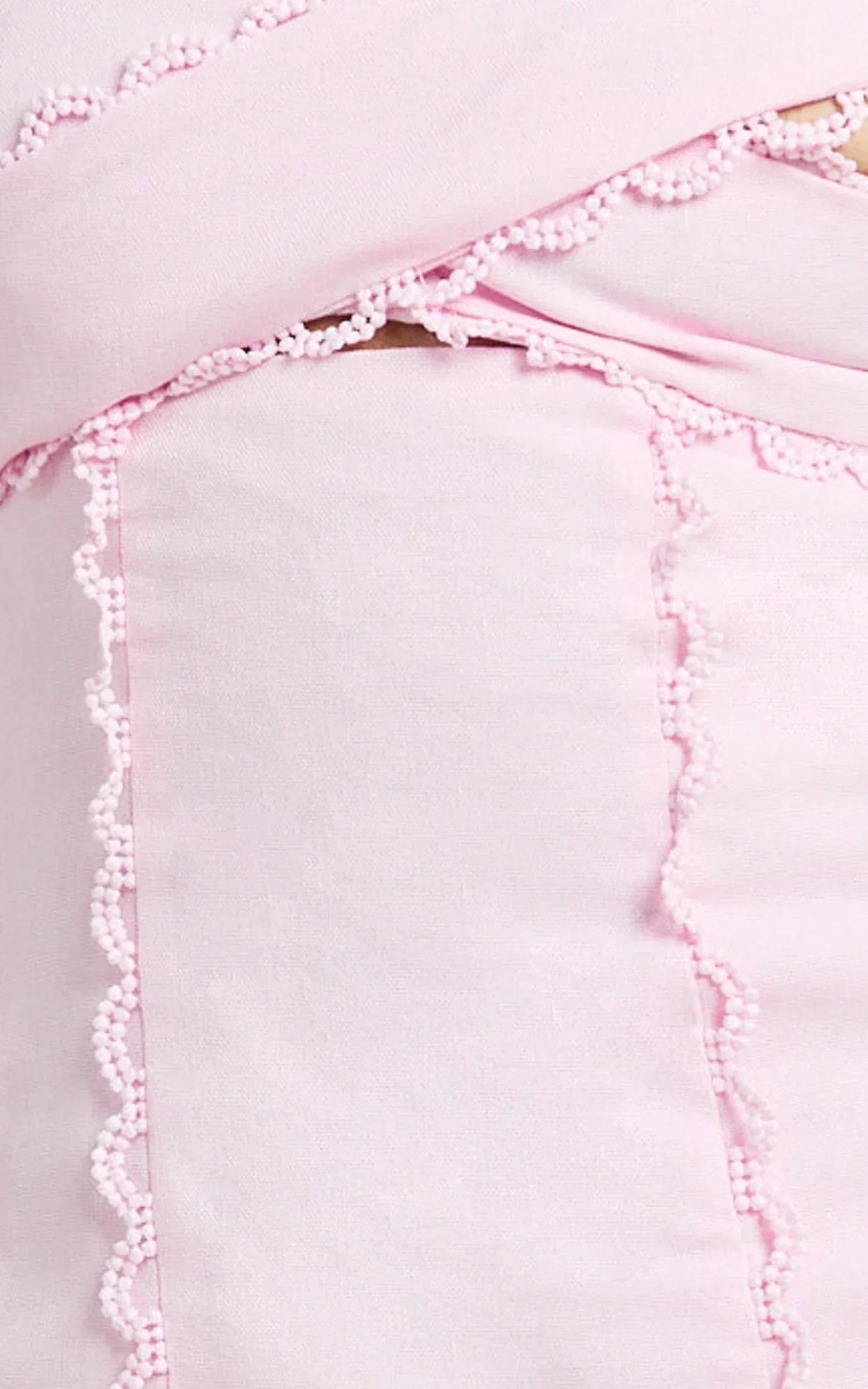 Gigi Mini Linen Blend Dress - Sweetheart Tie Back Scallop Detail Dress in Pink