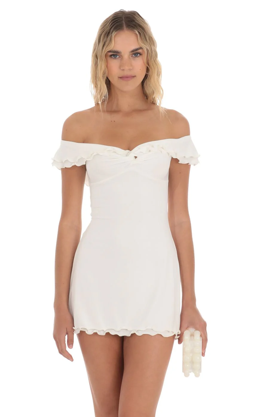 Off Shoulder Twist Dress in White