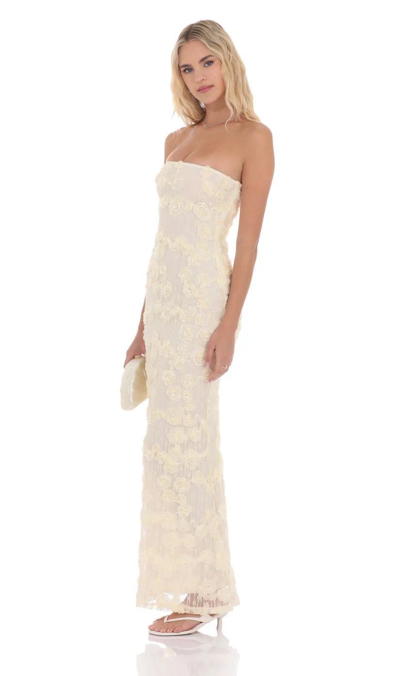 Satin Ruffle Fishtail Maxi Dress in Navy