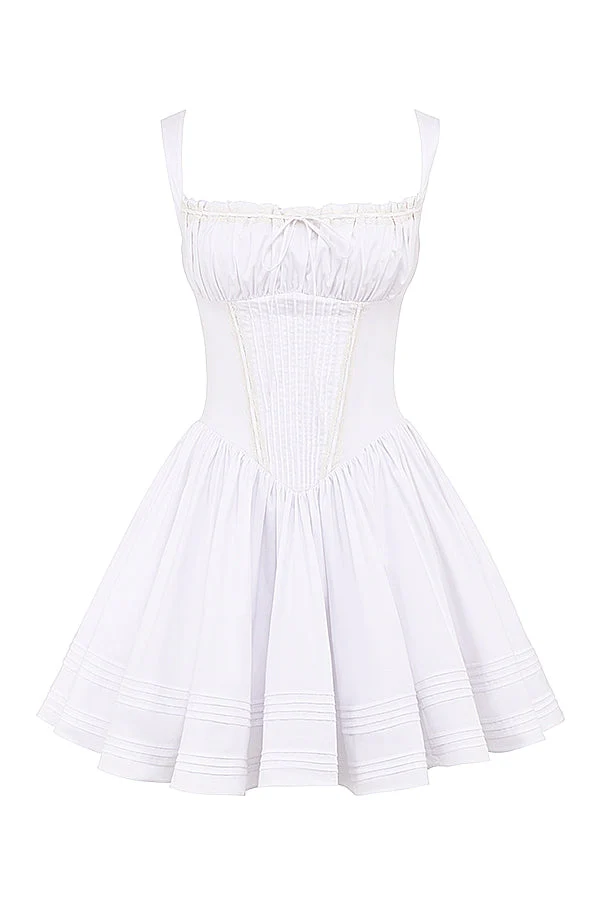 White Stretch Cotton Corset Midi Dress